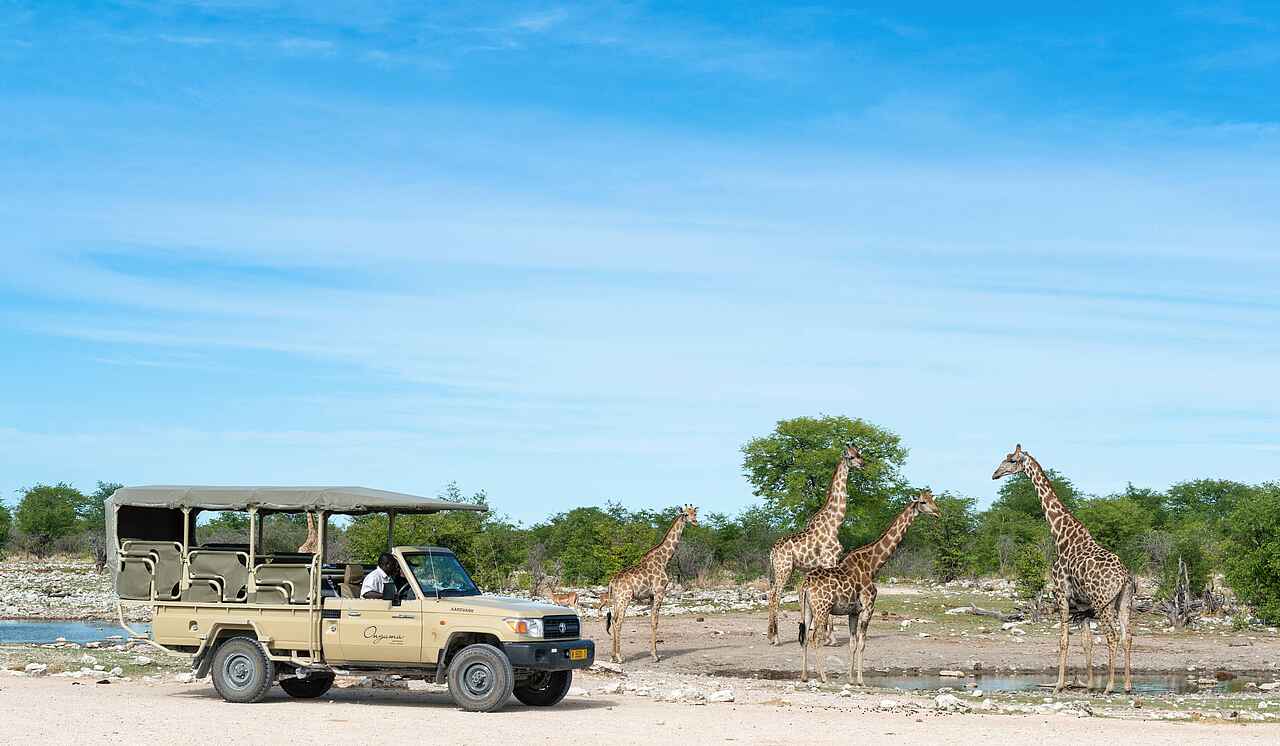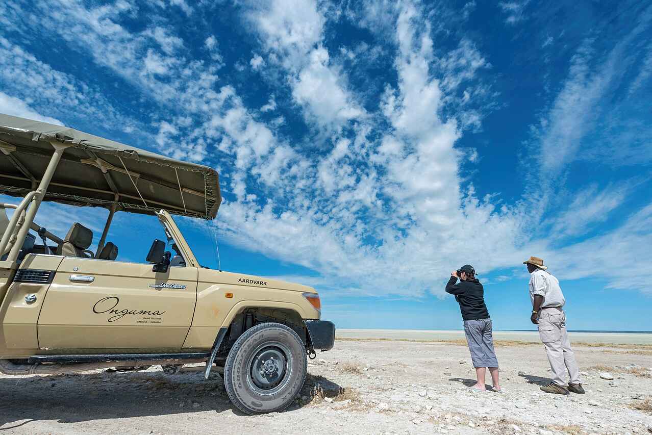 Etosha lässt sich das ganze Jahr über bereisen. Allerdings kann es in den Regenmonaten November bis April manchmal schwierig, Tiere zu sehen, da es ausreichend natürliches Wasser gibt und die Tiere nicht künstliche Wasserstellen aufsuchen. Die beste Zeit für Safaris in dieser Gegend ist die Trockenzeit von Juni bis November, da dann das Wetter klar und sonnig ist und sich viele Wildtiere um die Wasserstellen drängen. Im Juni und Juli werden die Nächte kalt.