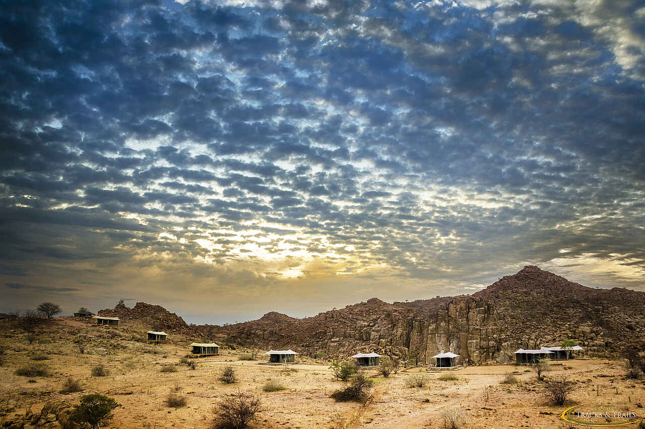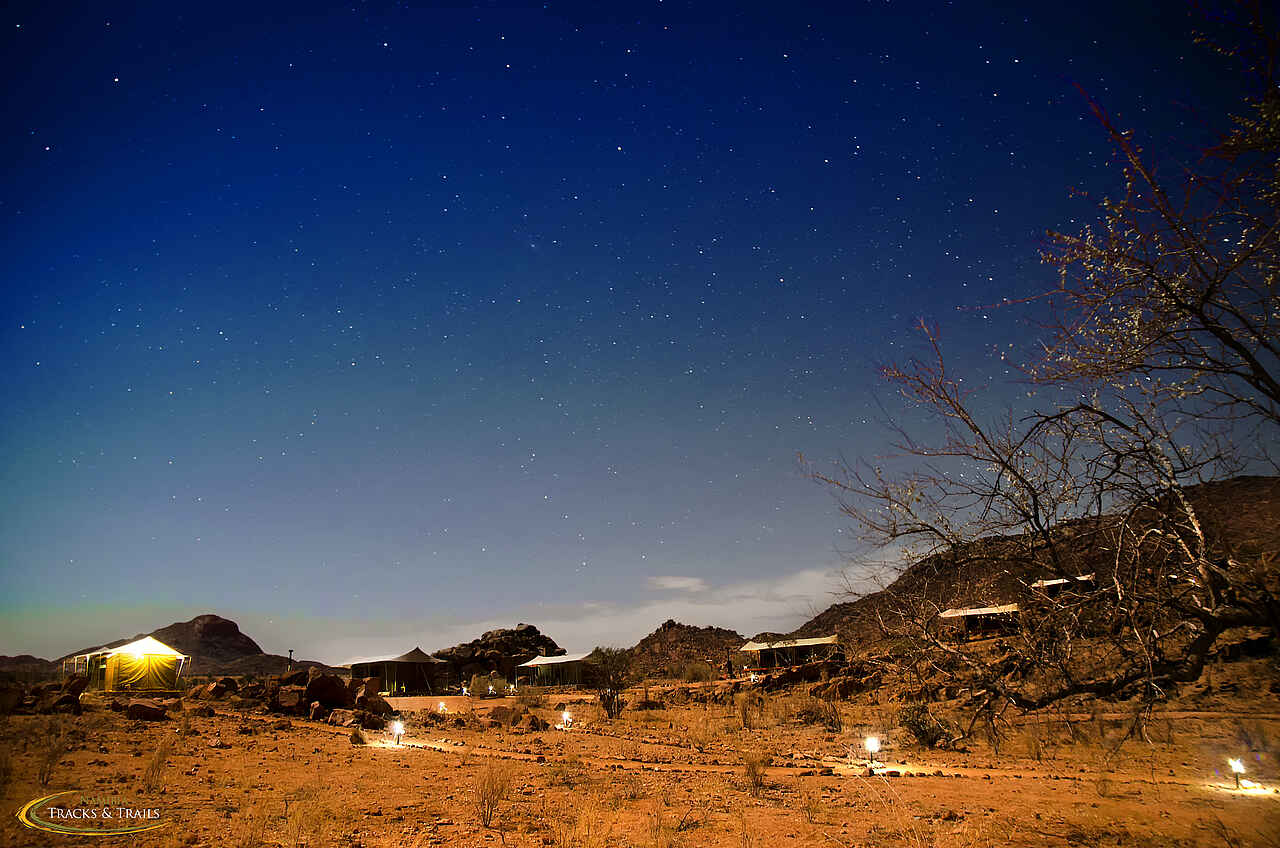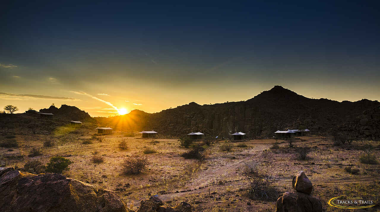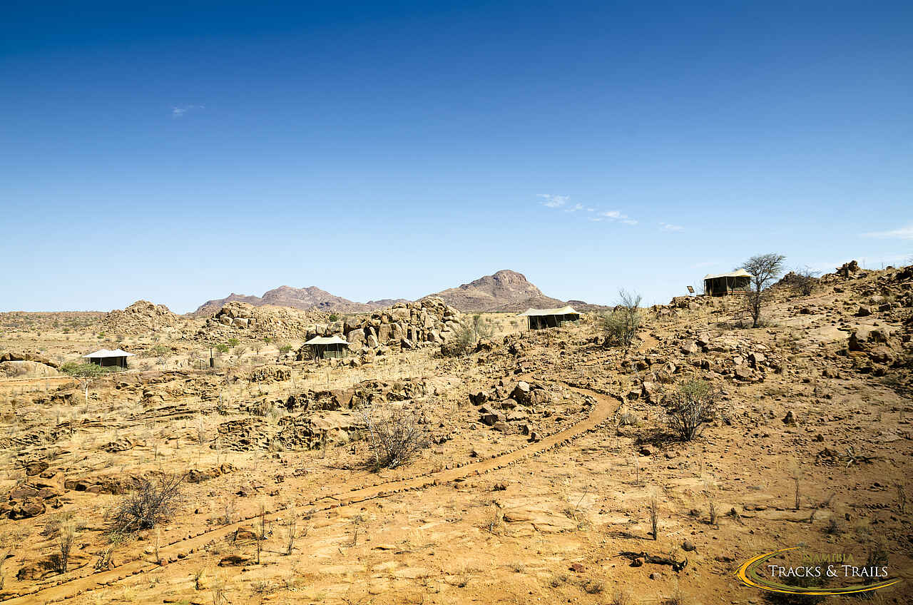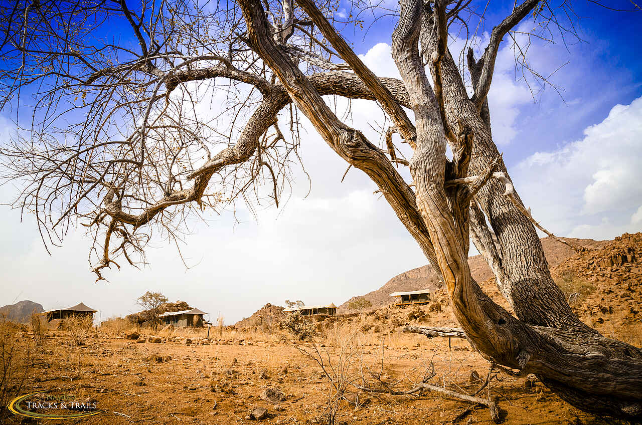 Das Camp bietet einen Panoramablick über den Ugab und dem massiven Brandberg. Als Alternative zu anderen Unterkünften ist man in diesem einerseits rustikalen, aber dennoch komfortablen Zeltlager, der Natur nah. Die Begegnung mit den Wüstenelefanten kann ein wahres Erlebnis sein, wie auch der Besuch bei der lokalen Bevölkerung dieser Gegend.