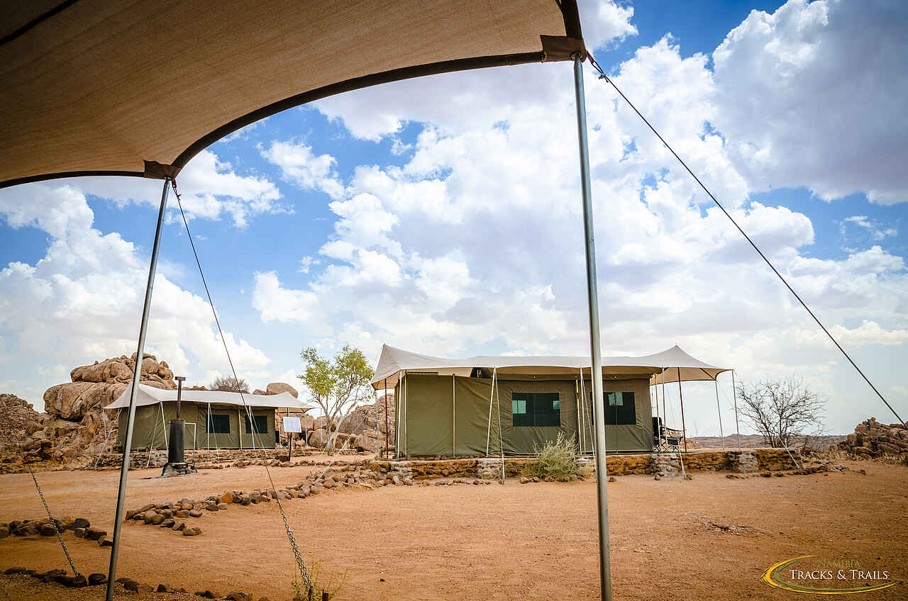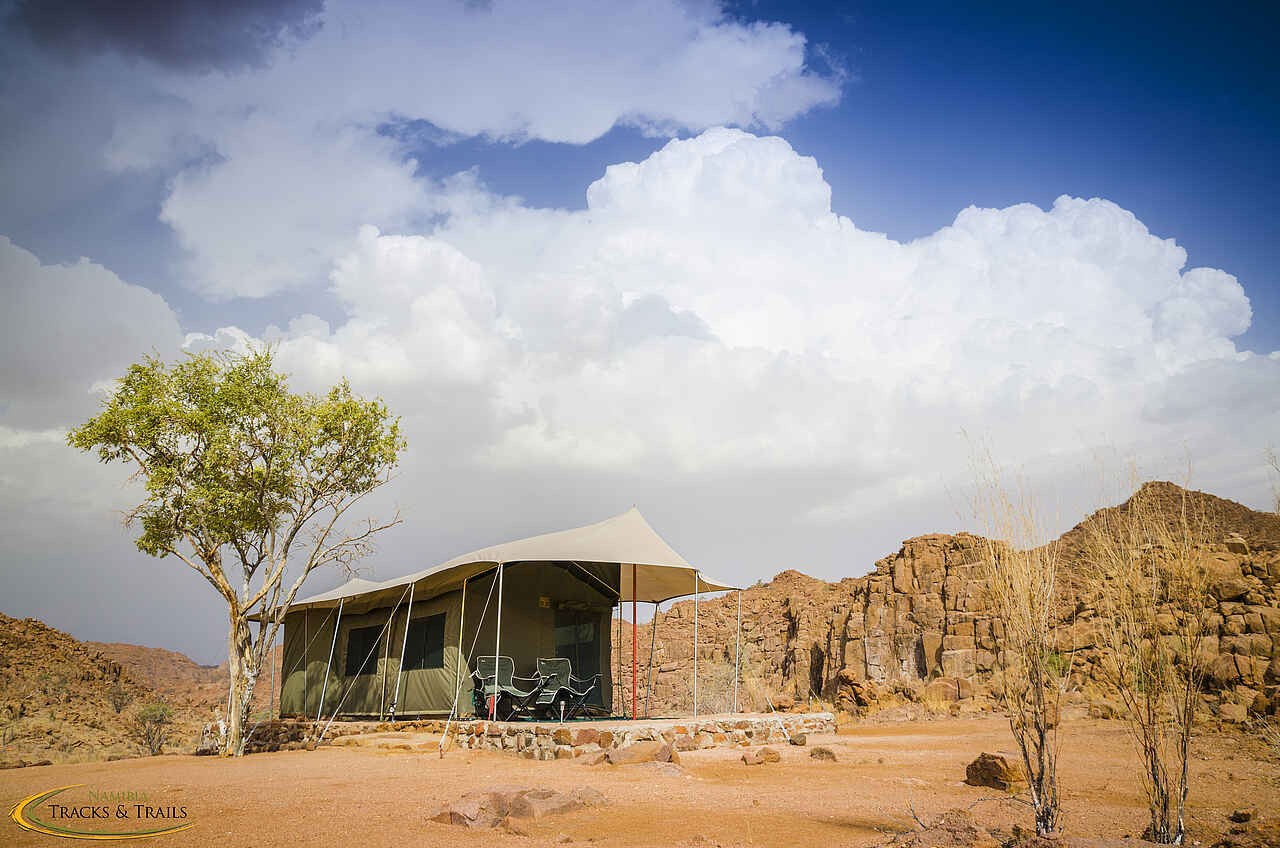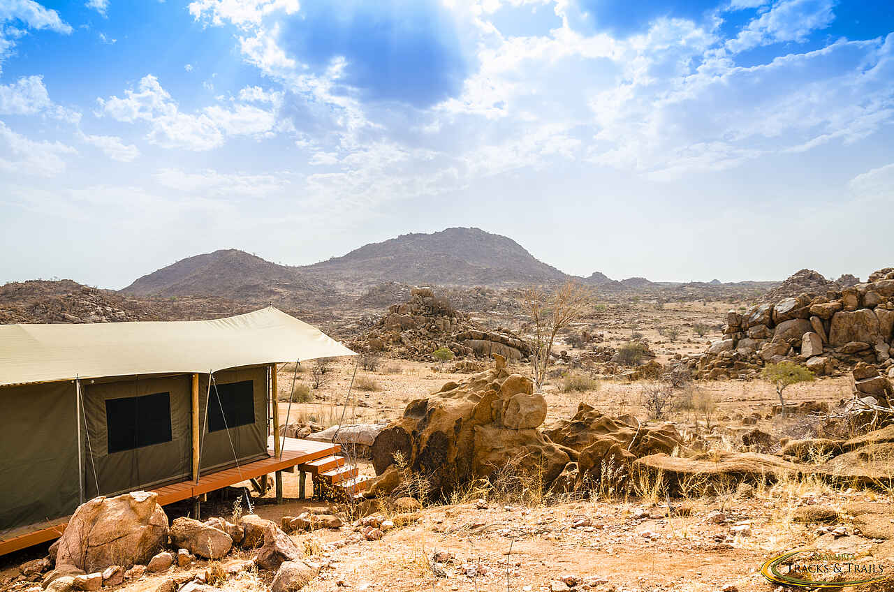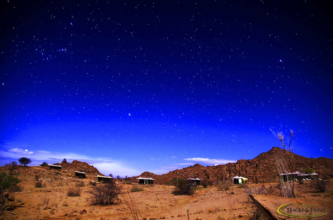 Das Camp bietet einen Panoramablick über den Ugab und dem massiven Brandberg. Als Alternative zu anderen Unterkünften ist man in diesem einerseits rustikalen, aber dennoch komfortablen Zeltlager, der Natur nah. Die Begegnung mit den Wüstenelefanten kann ein wahres Erlebnis sein, wie auch der Besuch bei der lokalen Bevölkerung dieser Gegend.