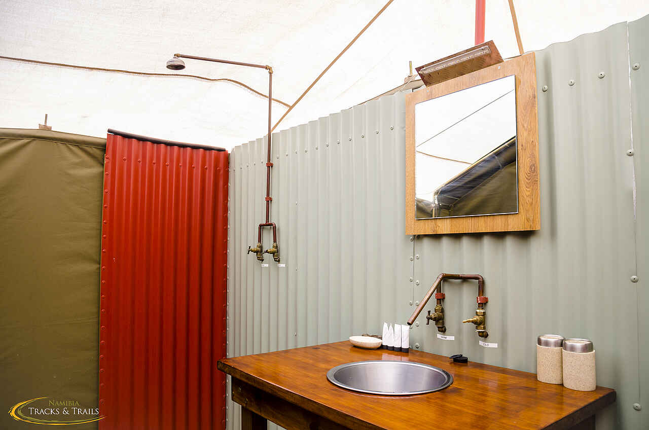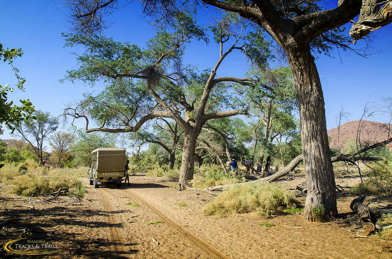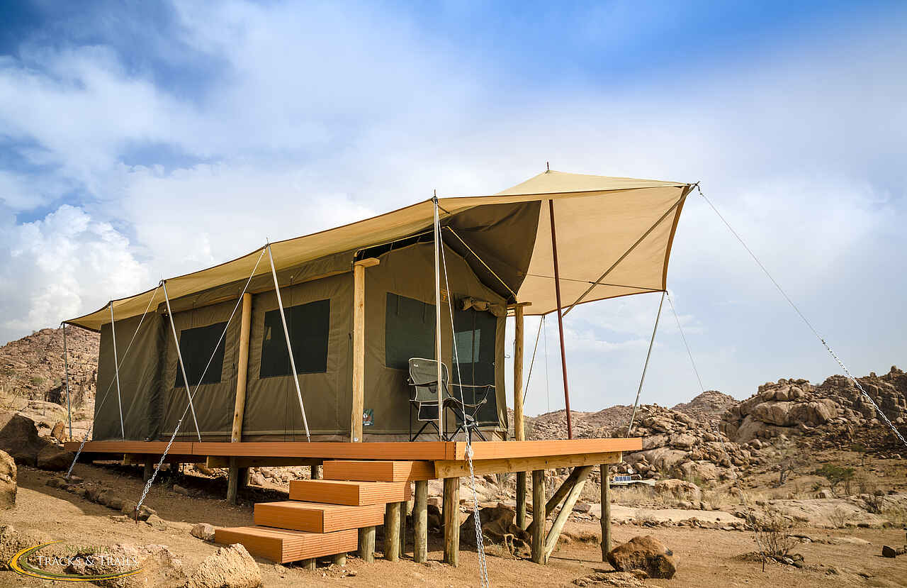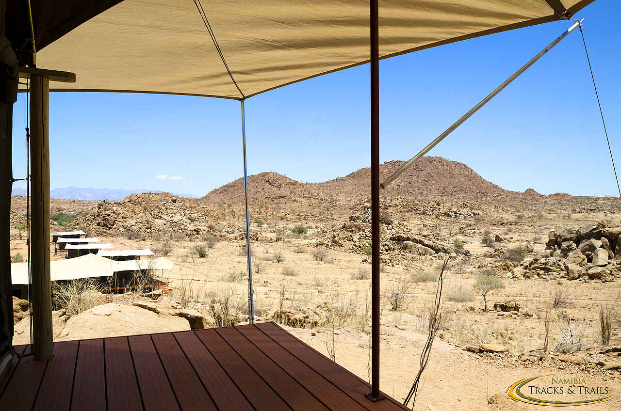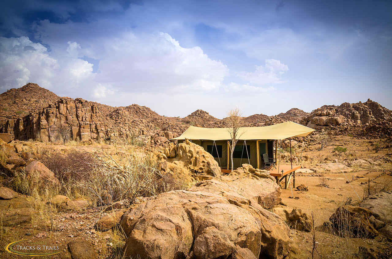 Das Camp bietet einen Panoramablick über den Ugab und dem massiven Brandberg. Als Alternative zu anderen Unterkünften ist man in diesem einerseits rustikalen, aber dennoch komfortablen Zeltlager, der Natur nah. Die Begegnung mit den Wüstenelefanten kann ein wahres Erlebnis sein, wie auch der Besuch bei der lokalen Bevölkerung dieser Gegend.