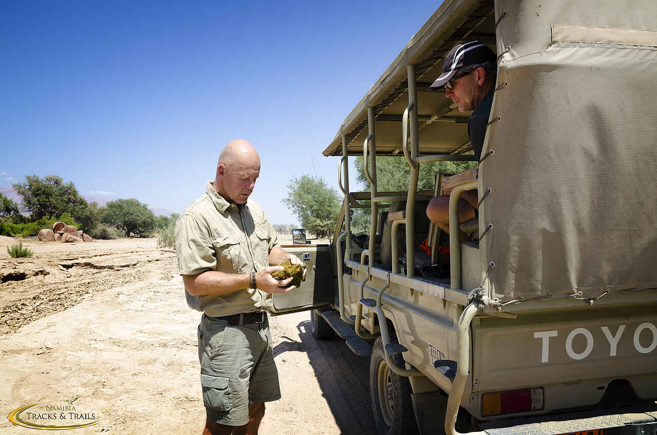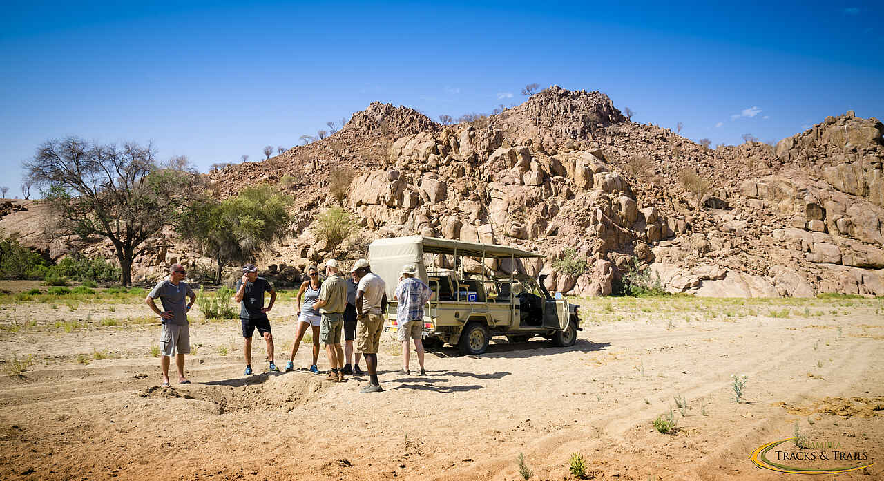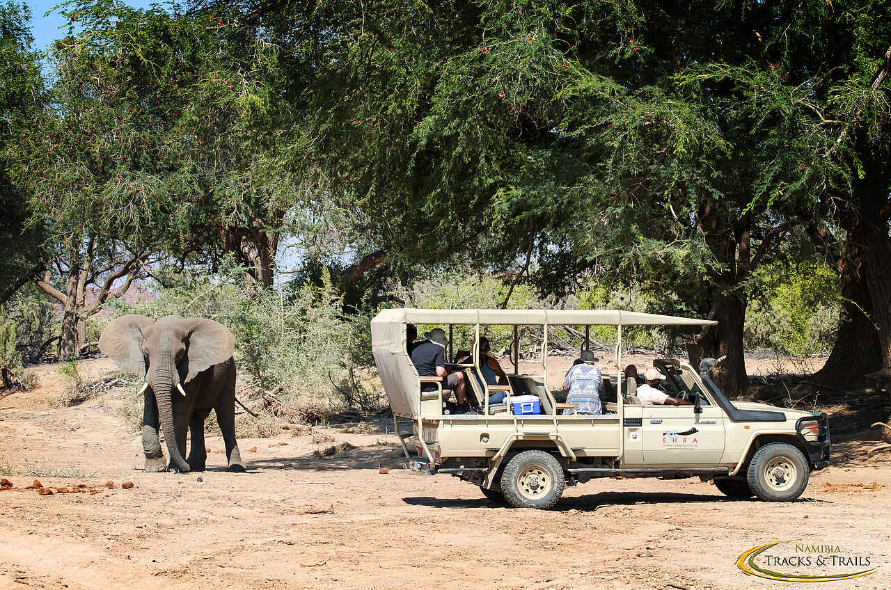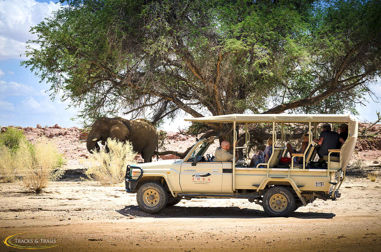 Am ersten Nachmittag können sich Gäste auf eine geführte Tour mit einem einheimischen Farmer, der einen Einblick in das Farmleben der Umgebung gewährt, anschließen. Danach kann eine naheliegende Dorfschule besucht werden und der Tag endet mit einem kurzen Spaziergang und Sundownern, bevor es zurück zum Camp geht. Am nächsten Tag erleben die Gäste eine Pirschfahrt auf der Suche nach den hier lebenden Wüstenelefanten. Das Elephant Human Relations Aid (EHRA) Team begleitet die Gäste auf den täglichen Streifgang zum Aufspüren und Studieren der hier lebenden Elefanten. Die Rückkehr zum Camp findet am späten Nachmittag statt.