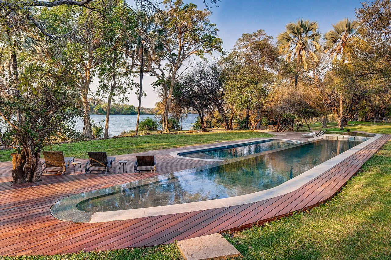 Das Herzstück der Anlage ist der 34 Meter lange Infinity-Pool zwischen dem Hauptgebäude und dem Ufer des Sambesi. Der Pool liegt unter schattigen, hochgewachsenen Bäumen. Der Pool ist in verschiedene Zonen unterteilt: ein 24 Meter langes Becken zum Bahnen ziehen, ein für Kinder ideales flaches Planschbecken und den Infinity-Pool im unteren Bereich.