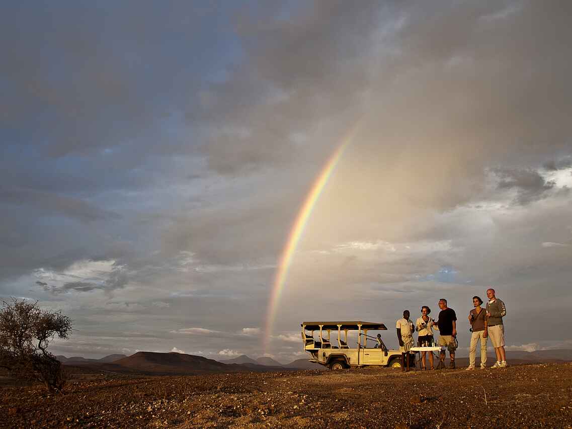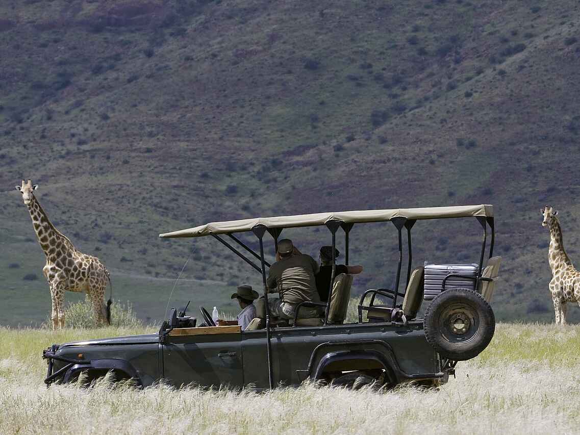 Geführte Wanderungen, Pirschfahrten im offenen Geländewagen, Swimming Pool, Vogelbeobachtung, Besuch beim Stamm der Ovahimba.