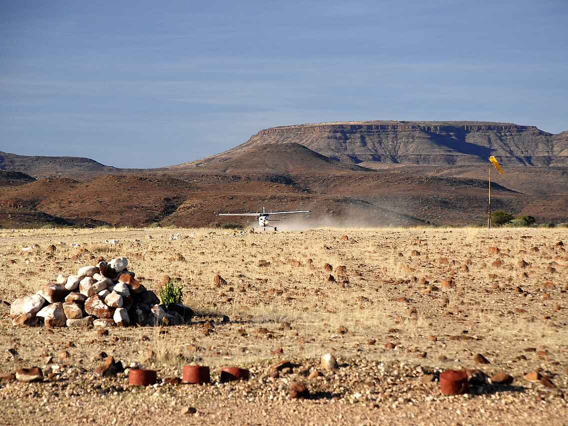 Flug zum Palmwag Airstrip oder Anreise im eigenen Wagen. Mietwagen können über die Lodge gebucht werden. 460 km Luftlinie nach Windhoek. 576 Straßenkilometer. Palmwag bietet sich als Zwischenstop zur Skelettküste, ins Kaokoveld oder zur Etoshapfanne an.