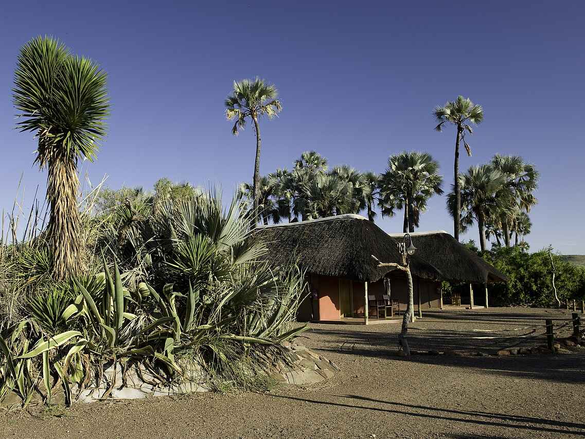 Die Lodge befindet sich im Nordwesten Namibias, in Damaraland in der Kunene Region. Dieses Gebiet ist vor allem für seine vielseitigen Landschaft und Bergformationen bekannt. Die Palmwag Lodge liegt direkt im Uniab-Flusstal in unmittelbarere Nähe zum Palmwag-Konzessionsgebiet