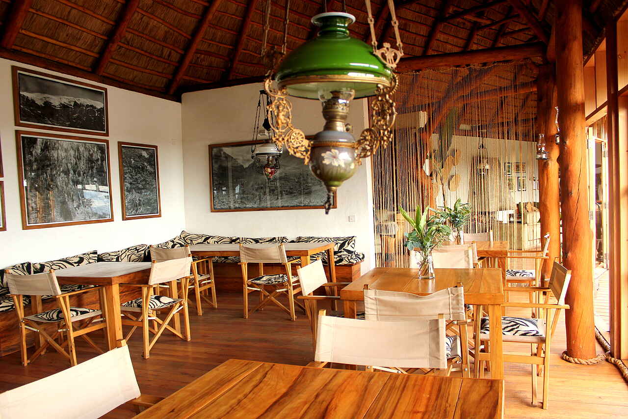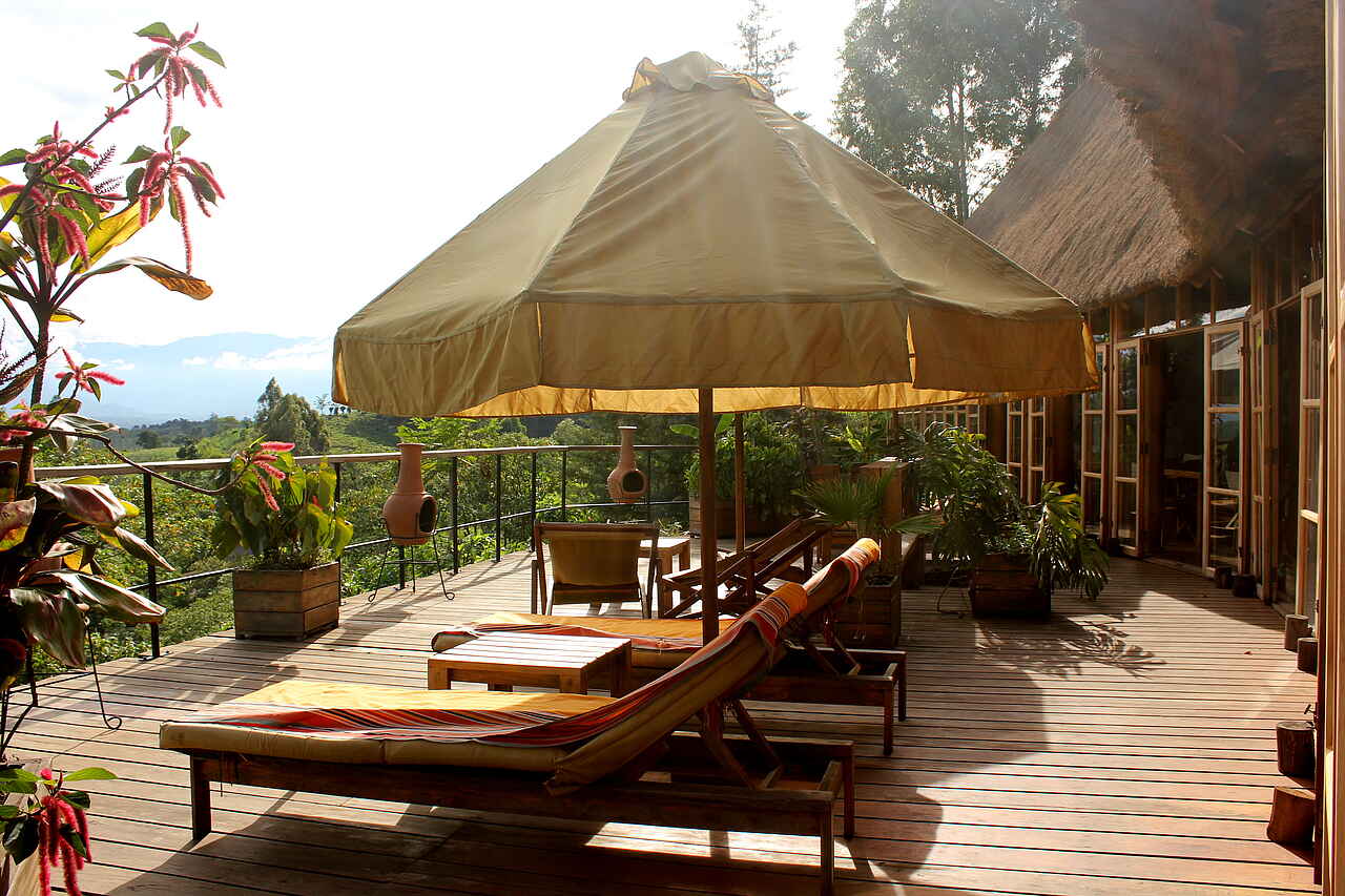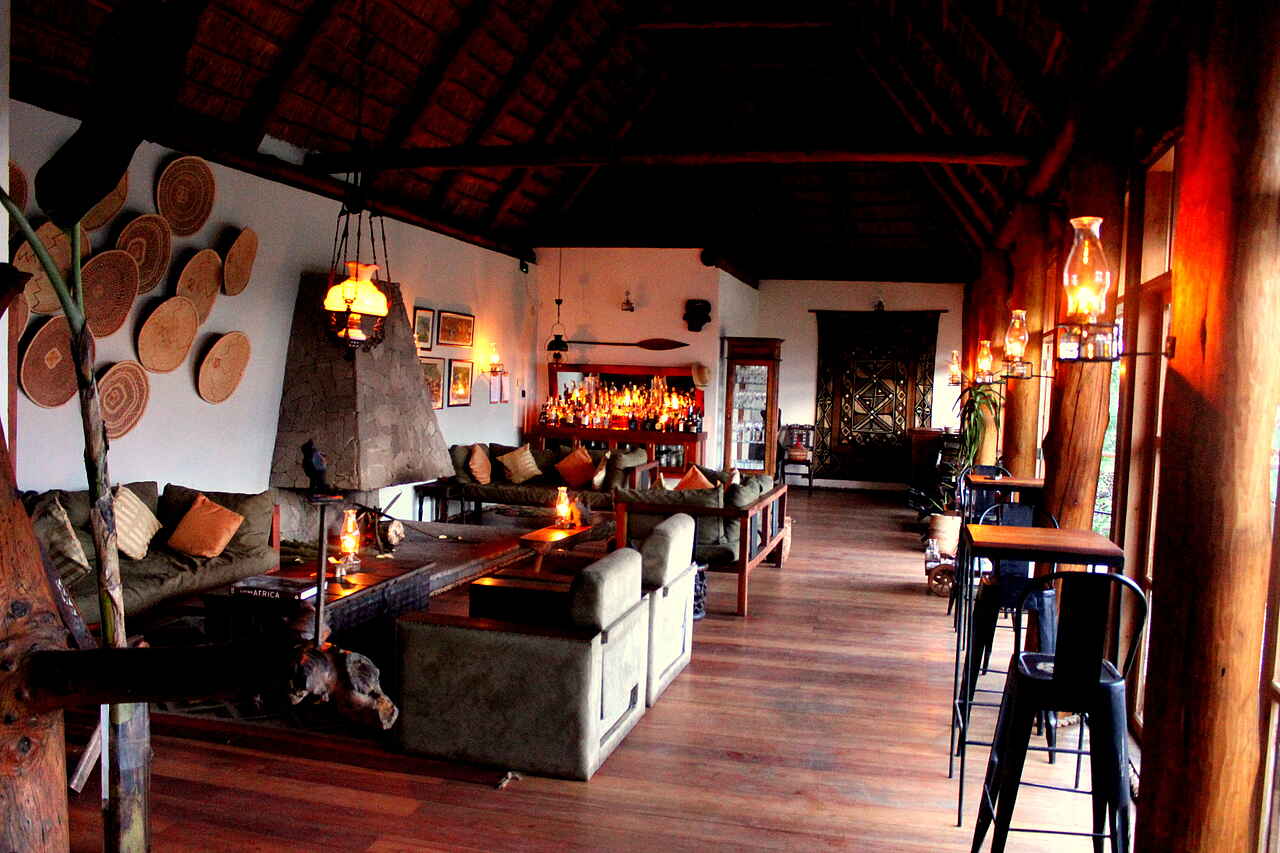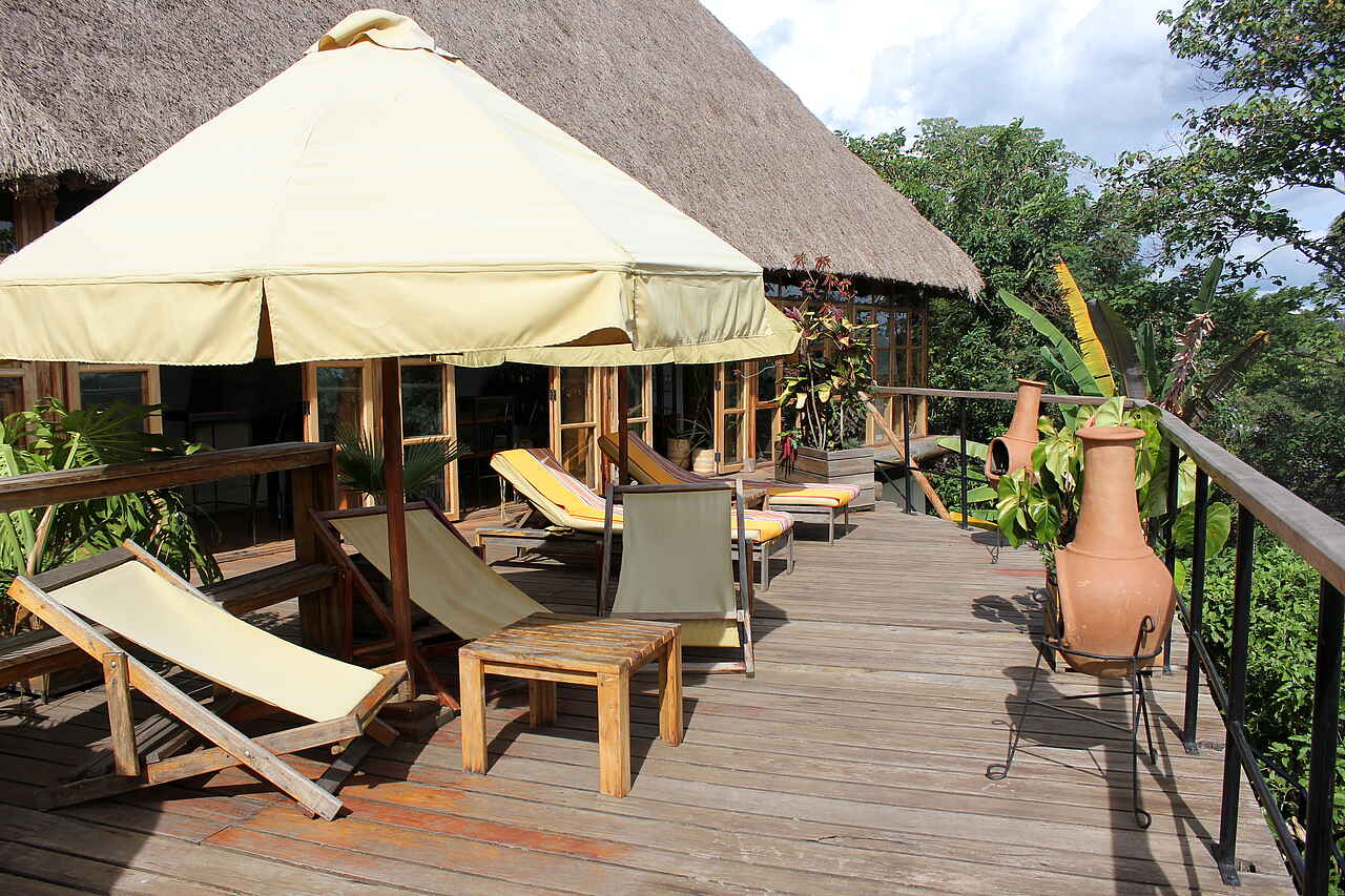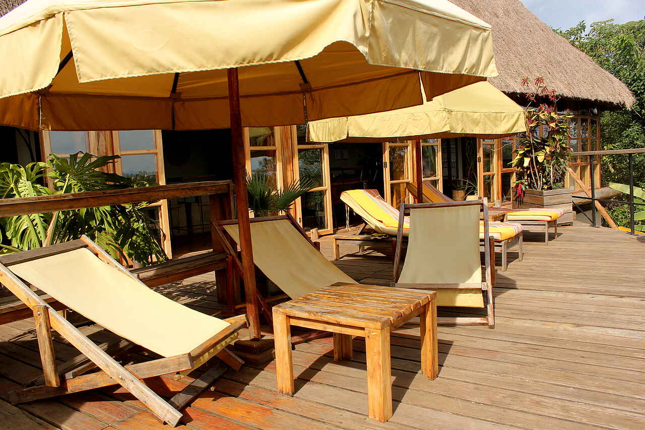 Das geräumige und stilvoll eingerichtete Restaurant und die gemütliche Lounge mit einer äußerst gut bestückten Bar, beide zur malerischen Sonnenterrasse geöffnet, sind das Herz der Papaya Lake Lodge.Der luftige und helle Gemeinschaftsbereich des Restaurants und der Lounge wurde subtil geplant und mit edlen Möbeln bestückt, und bis ins kleinste Detail mit Dekor und Handwerk verfeinert. Während des Tages kann man auf einem der gemütlichen Sofas oder der Sonnenterrasse verweilen, die direkt vor dem Restaurant und der Lounge liegt und mit ihrem Panoramablick auf den See die Gäste begeistert. Vom Hauptgebäude aus führt eine hölzerne Treppe steil hinauf zum Pool. Der Pool biete neben Entspannung und einer Abkühlung an heißen Tagen außerdem einen atemberaubenden Blick auf die beiden Kraterseen Lyantonde und Kifuruka und das Rwenzori Gebirge.