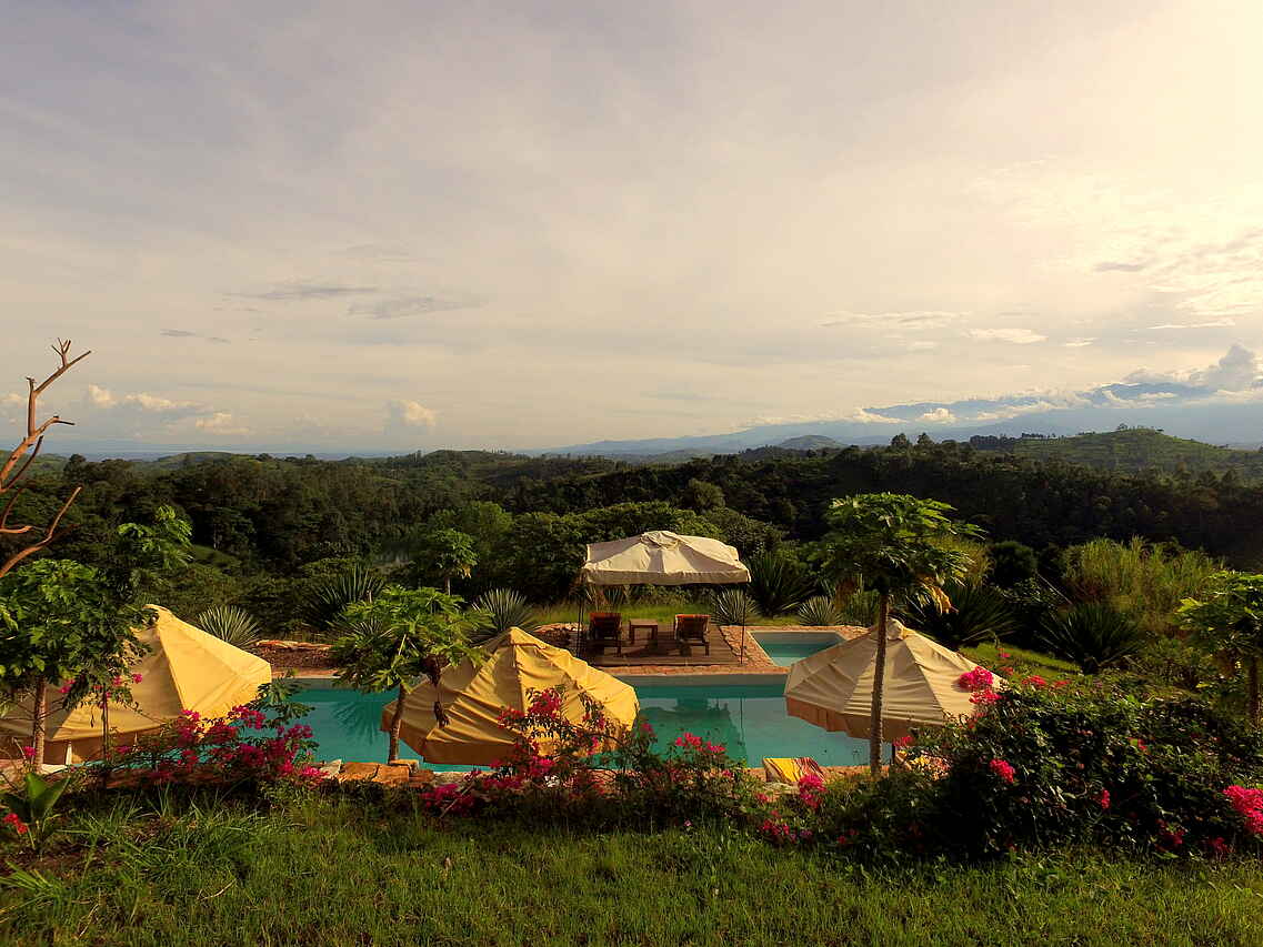 Eine luxuriöse Oase, umgeben von der üppigen, immergrünen Landschaften der Ugandischen Großen Kraterseen-Region, gelegen zwischen zwei erloschenen Vulkanen und direkt am türkisfarbenen Wasser vom Lyantonde- und Kifuruka-See. Im Hintergrund zeigt sich die majestätische Ruwenzori Bergkette. Neun luxuriöse Hütten, ein Restaurant mit erstklassigem Service und exquisiter Küche und ein wunderschöner Pool auf einer malerischen Terrasse auf einem Hügel oberhalb der Lodge machen die Papaya Lake Lodge aus. Ein Lodge geführt mit großer Leidenschaft, Wertschätzung für die lokale Kultur und die Aufmerksamkeit für das Detail. Die Lodge wurde von seiner Umgebung inspiriert und erfrischt mit ihrem eigenen Stil und den höchsten Serviceansprüchen.