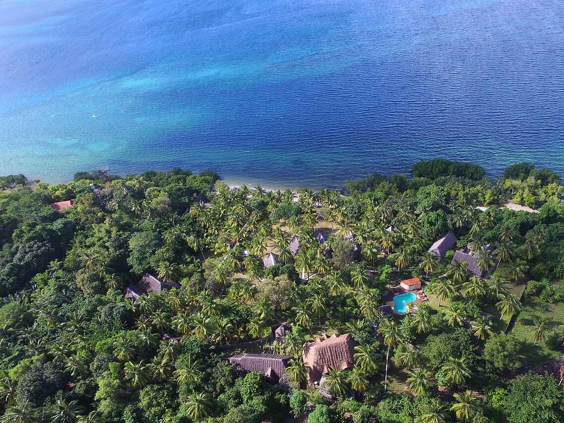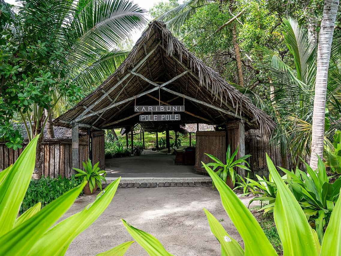 Pole Pole befindet sich im Gebiet von Chole Bay, in der Nähe des Dorfes Utende an der Südostküste des Mafia Island Marine Parks in Tansania. Es liegt direkt am Strand, eingebettet in einen tropischen Garten, mit einem spektakulären Blick auf das Mafia-Archipel und den Indischen Ozean.