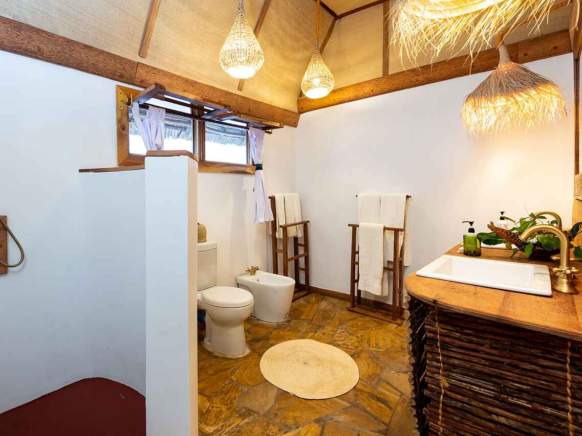 Drei Bungalows sind als Familiensuiten konzipiert und verfügen über zwei Zimmer, die durch ein gemeinsames Badezimmer und einen kleinen Korridor getrennt sind. Eine der Familiensuiten sowie ein Bungalow verfügen zudem noch über einen eigenen Pool auf der Veranda, was zusätzliche Privatsphäre und Exklusivität gewährleistet.