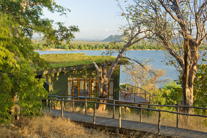 Grasbewachsene Unterkunftsdächer für natürliche Kühlung. Wasser wird gefiltert. Stromversorgung über das öffentliche Netz mit Back-up Generator.