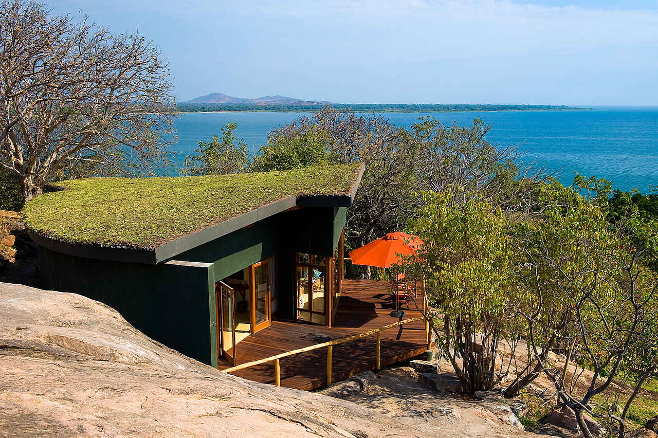 10 sogenannte Gästevillen, ebenfalls mit geschwungenem Grundriss. 4 davon mit Doppelbetten, 4 mit zwei Einzelbetten, eine Honeymoon-Villa und eine Familienvilla. Alle Villen mit privater Veranda, grasbewachsenem Dach (natürliche Kühlung), zwei Waschbecken, Badewanne, Dusche, WC, fließend Kalt- und Warmwasser. Die Honeymoon-Villa hat zusätzlich eine Außendusche. Alle Villen mit Blick auf den See hinaus. Air Conditioning und Ventilatoren.