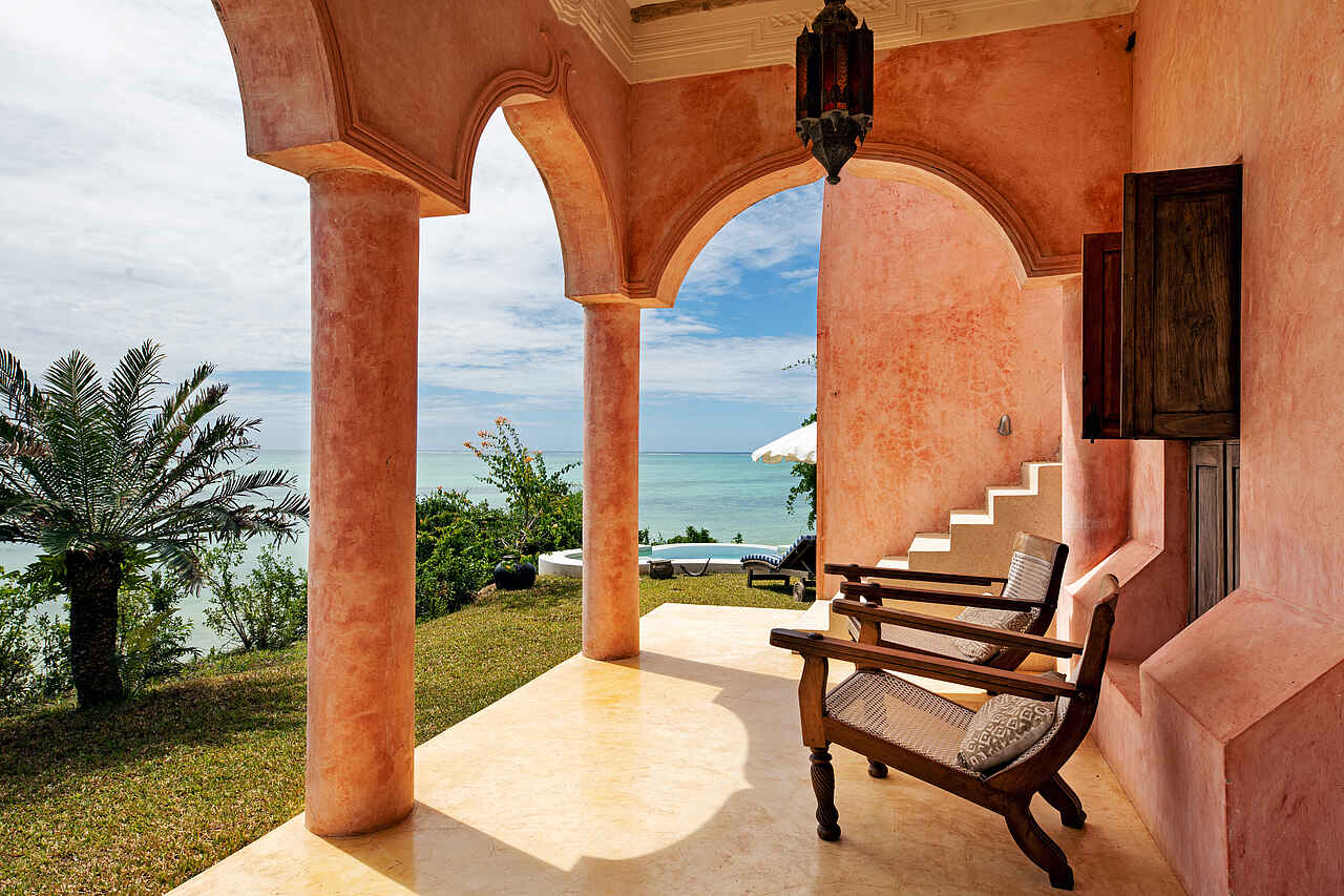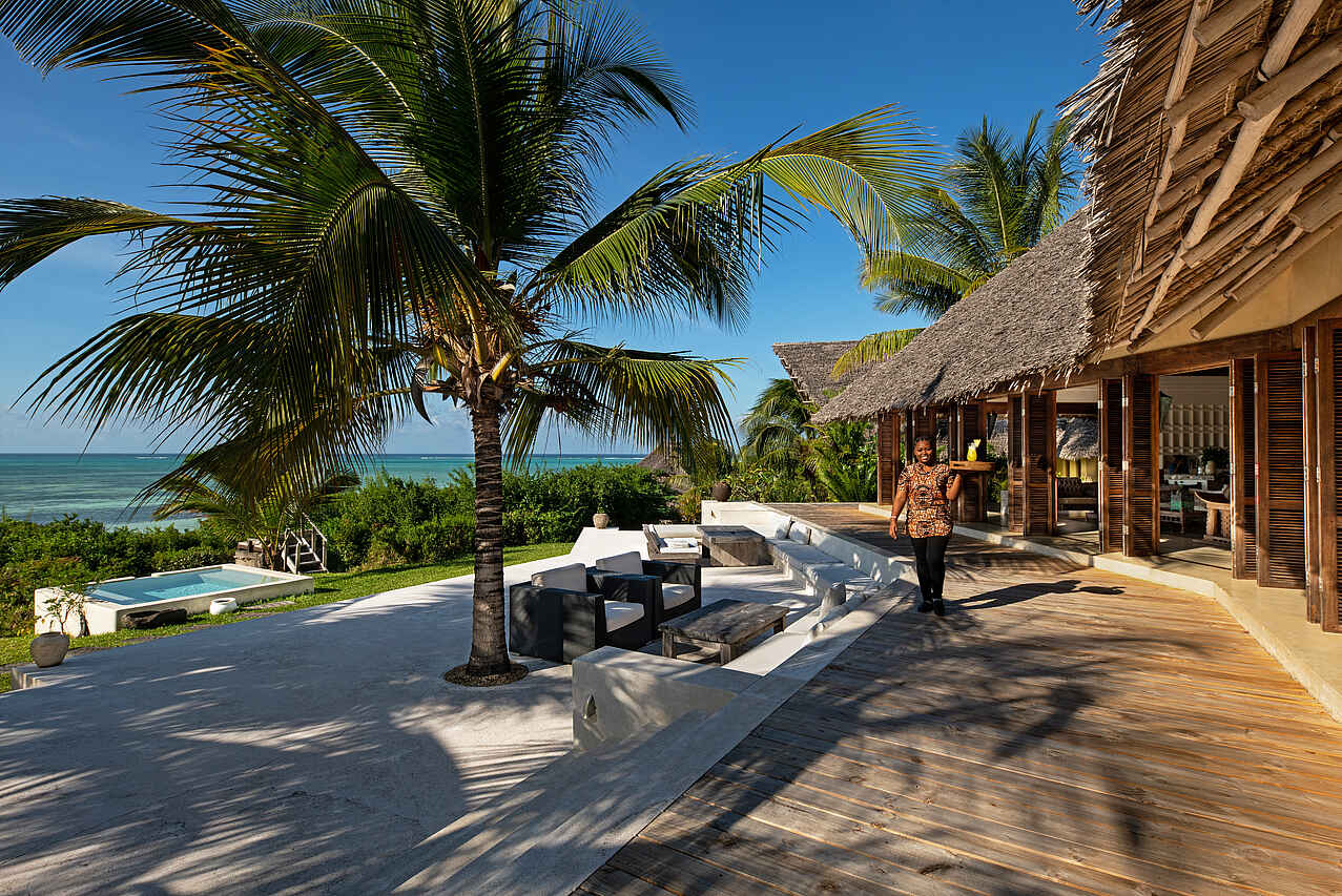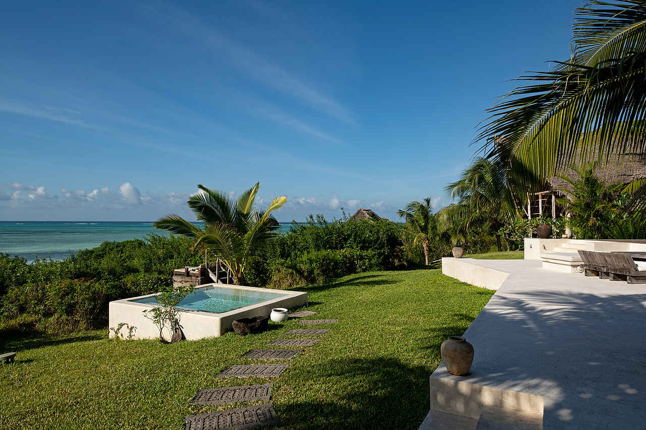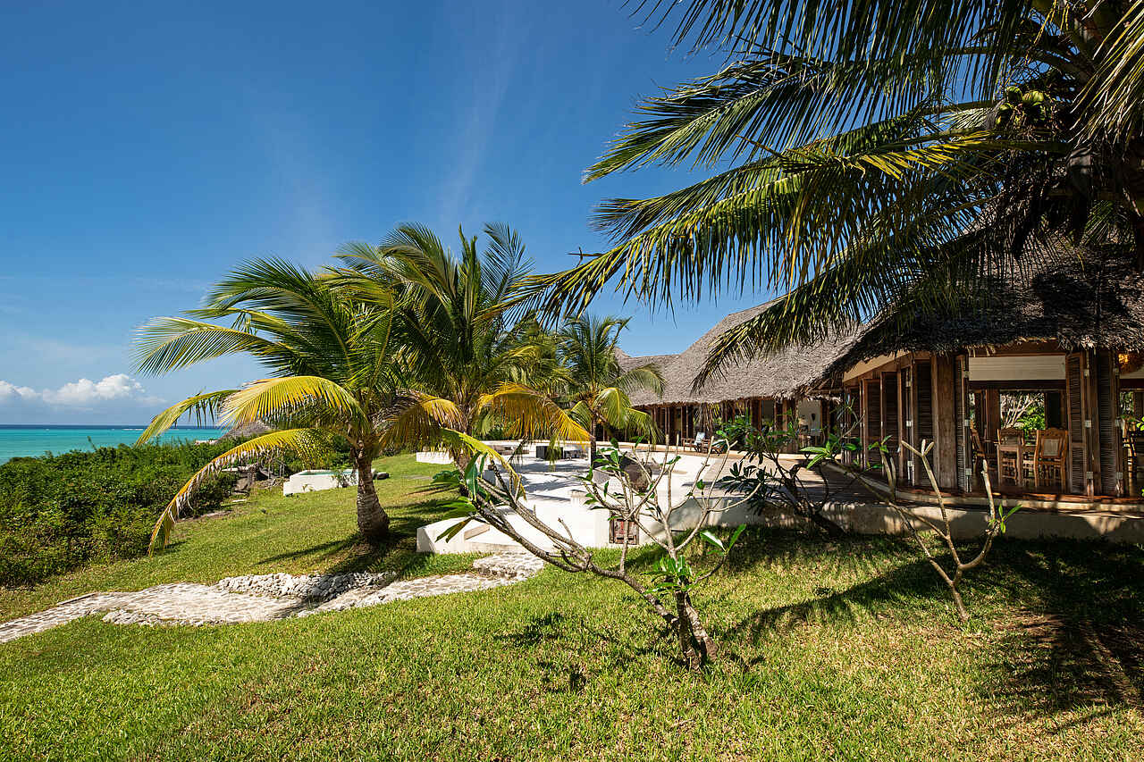 Das Qambani Luxury Resort liegt auf Sansibar, Tansania, auf der südöstlichen Halbinsel in der Nähe des Dorfes Michamvi. Es befindet sich auf einer kleinen Klippe mit Blick auf den Indischen Ozean und ist umgeben von tropischer Vegetation, weißen Sandstränden und türkisfarbenem Wasser - ideal für Ruhesuchende.