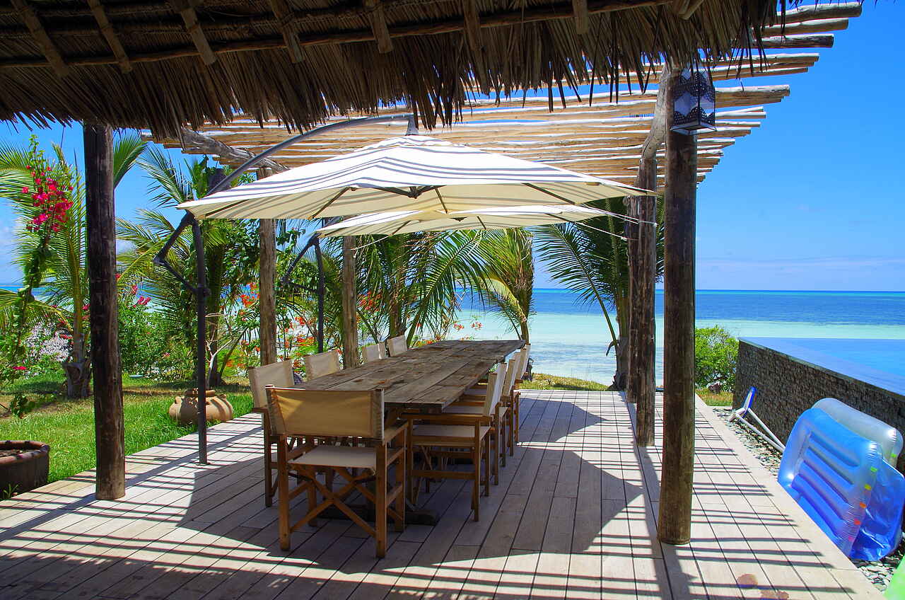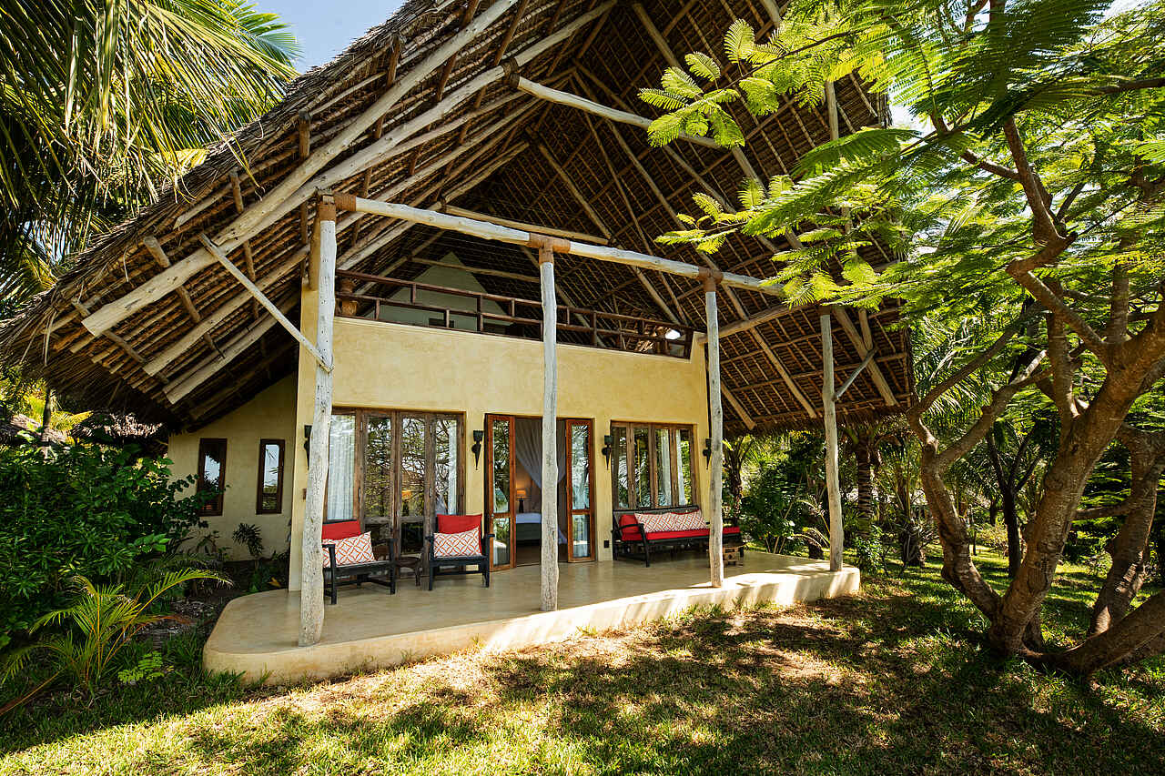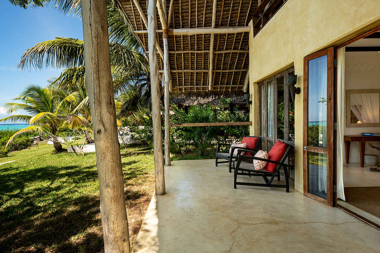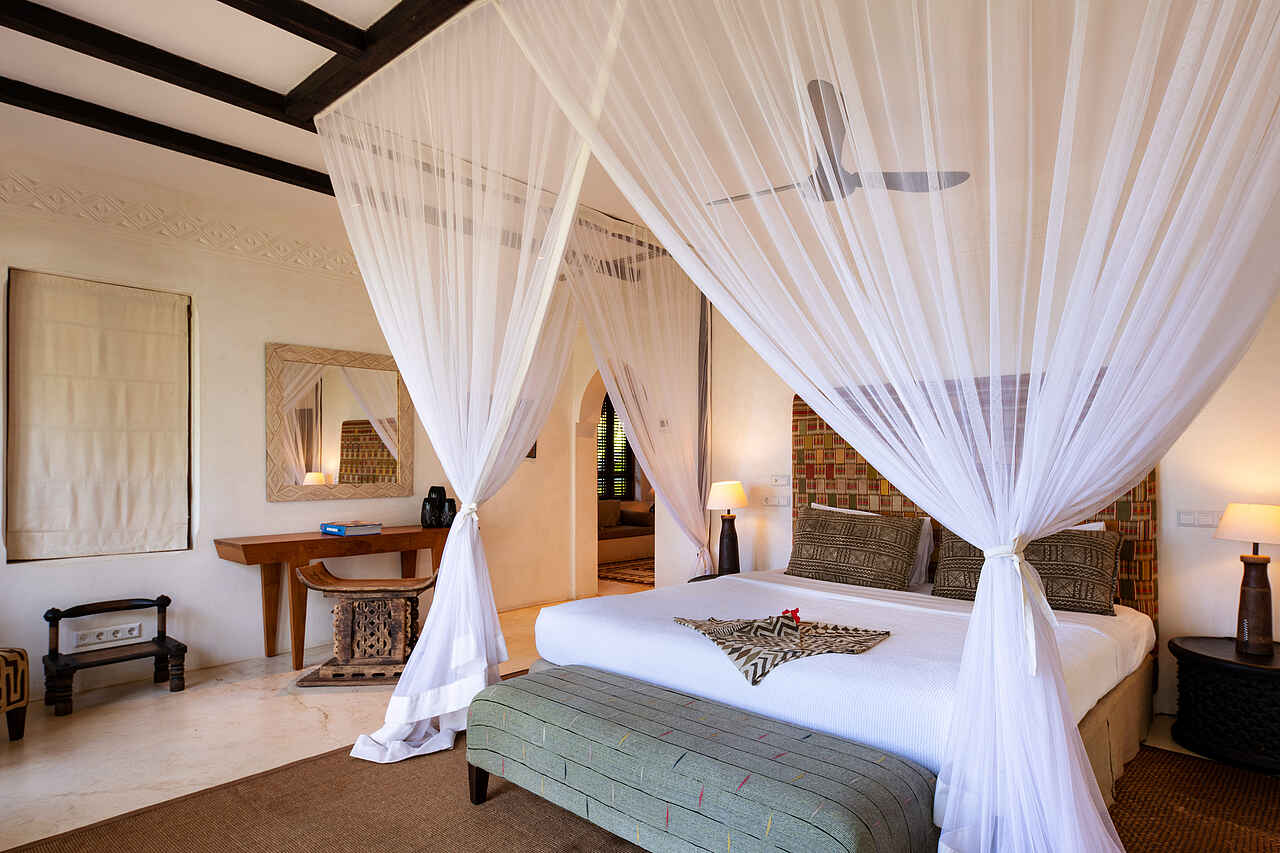 Das Qambani Luxury Resort liegt auf Sansibar, Tansania, auf der südöstlichen Halbinsel in der Nähe des Dorfes Michamvi. Es befindet sich auf einer kleinen Klippe mit Blick auf den Indischen Ozean und ist umgeben von tropischer Vegetation, weißen Sandstränden und türkisfarbenem Wasser - ideal für Ruhesuchende.