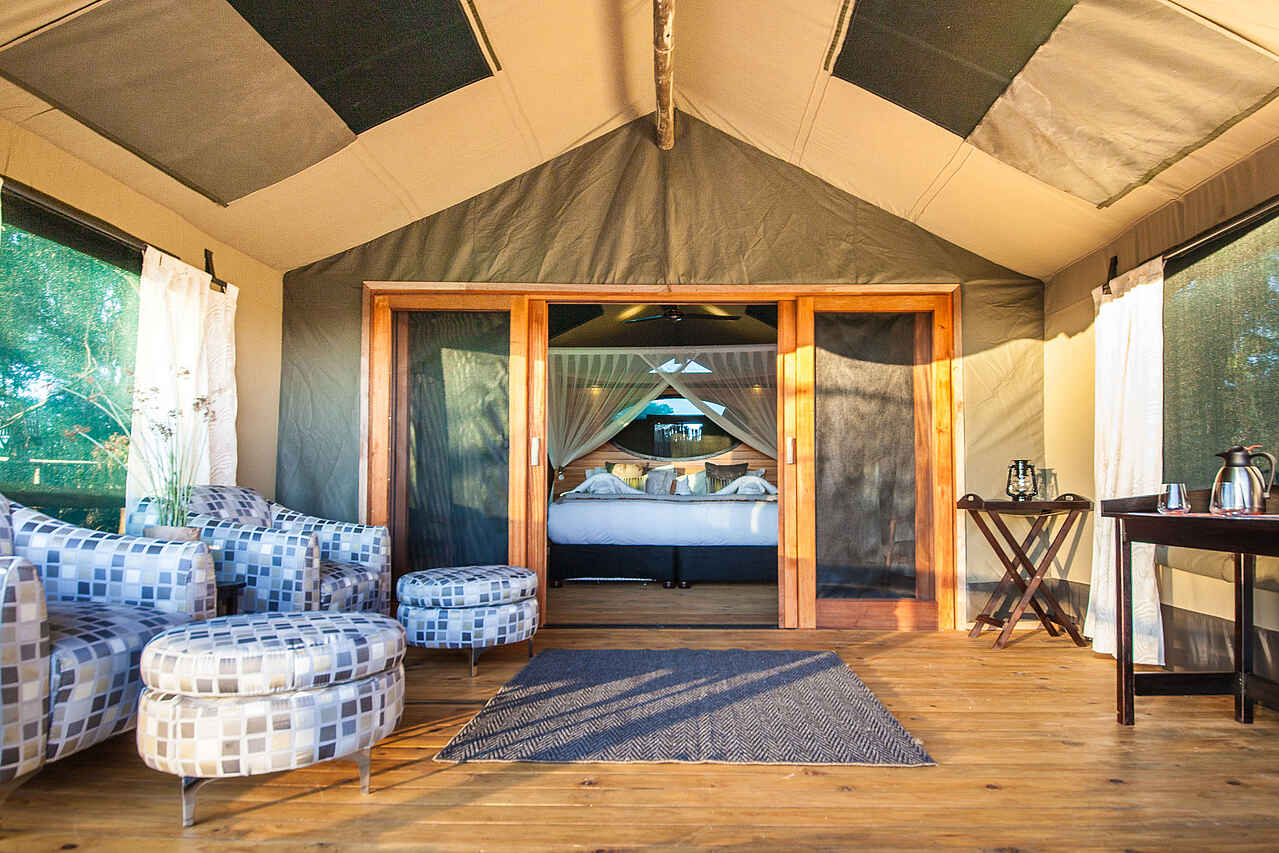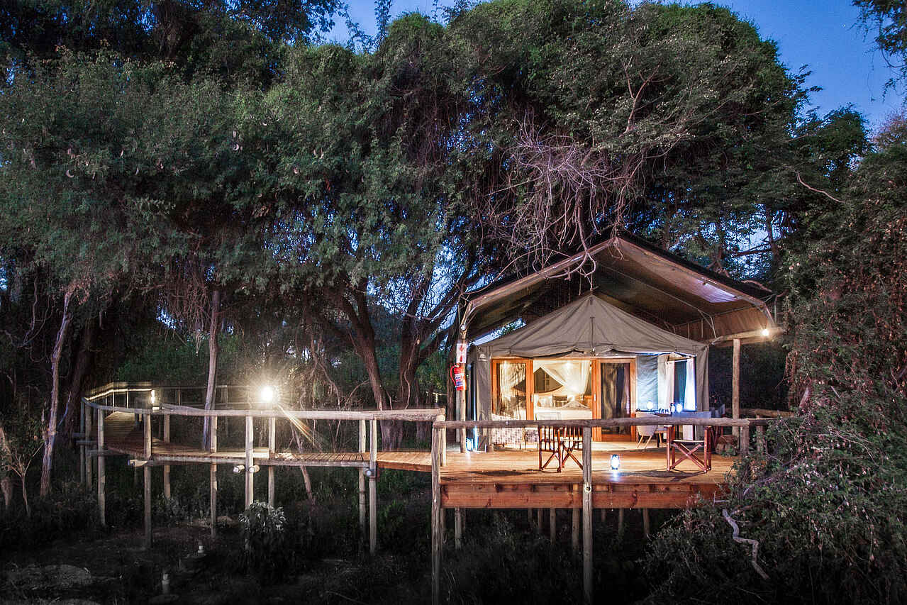 Max. 18 Gäste in 8 Zeltsuiten inkl. einem Familienzelt