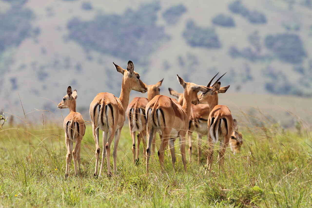 Im rund 100.000 Hektar großen Akagera Nationalpark leben Elefanten, Giraffen, Wasserbüffel, Leoparden, Löwen, diverse Antilopenarten, Hyänen, Zebras, Flusspferde, Nashörner und Krokodile. Big-5-Gebiet. Große Artenvielfalt bei den Vögeln, darunter Schuhschnabel und Papyruswürger.