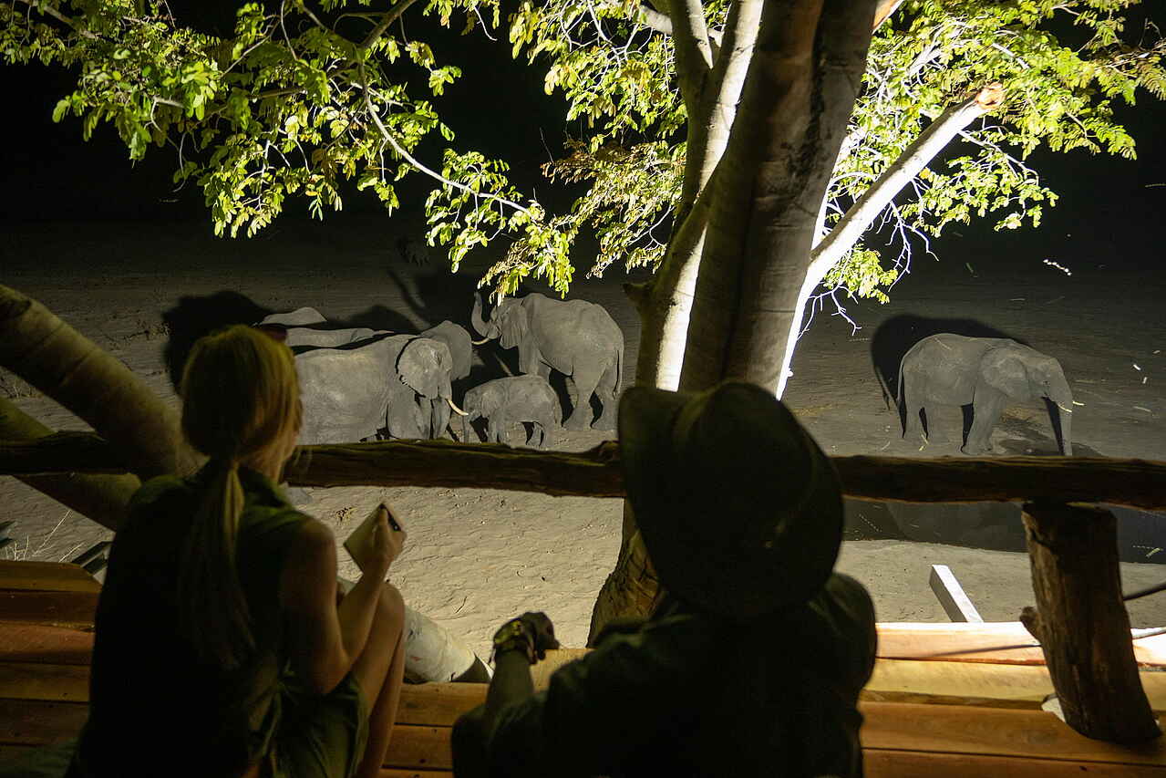 Besonders beliebt ist das unterirdische Hide, von dem aus sich das Treiben am Wasserloch über Stunden aus nächster Nähe beobachten lässt. Das Baumhaus-Deck eröffnet zusätzlich weite Ausblicke und ist ein perfekter Ort für die ersten Sonnenstrahlen am Morgen oder den stimmungsvollen Sonnenuntergang. Auf Wunsch organisiert die Lodge auch Besuche in Naturschutzprojekten und in benachbarten Dorfgemeinschaften, die einen Einblick in das Leben und die Kultur der Region ermöglichen.