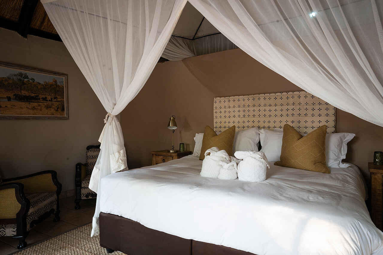 Die Sable Valley Lodge verfügt über elf charmante Rondavels mit Reetdach, die gemütlichen Komfort bieten. Jedes Rondavel besitzt ein En-suite-Badezimmer mit Dusche, Waschbecken und WC sowie eine private Veranda mit Blick auf das Dete Vlei. Im Inneren sorgen bequeme Betten mit Moskitonetzen, Sitzgelegenheiten und praktische Staumöglichkeiten für ein angenehmes Wohngefühl. Zur weiteren Ausstattung gehören Haartrockner, Safe sowie eine Tee- und Kaffeestation für den ersten Genuss am Morgen. Die Gestaltung ist schlicht, natürlich und ganz auf Entspannung ausgerichtet. Für Familien können in einigen Unterkünften zusätzliche Betten arrangiert werden. Die besondere Queen Elizabeth Suite bietet neben ihrer großzügigen Raumaufteilung auch eine Badewanne für entspannte Stunden.