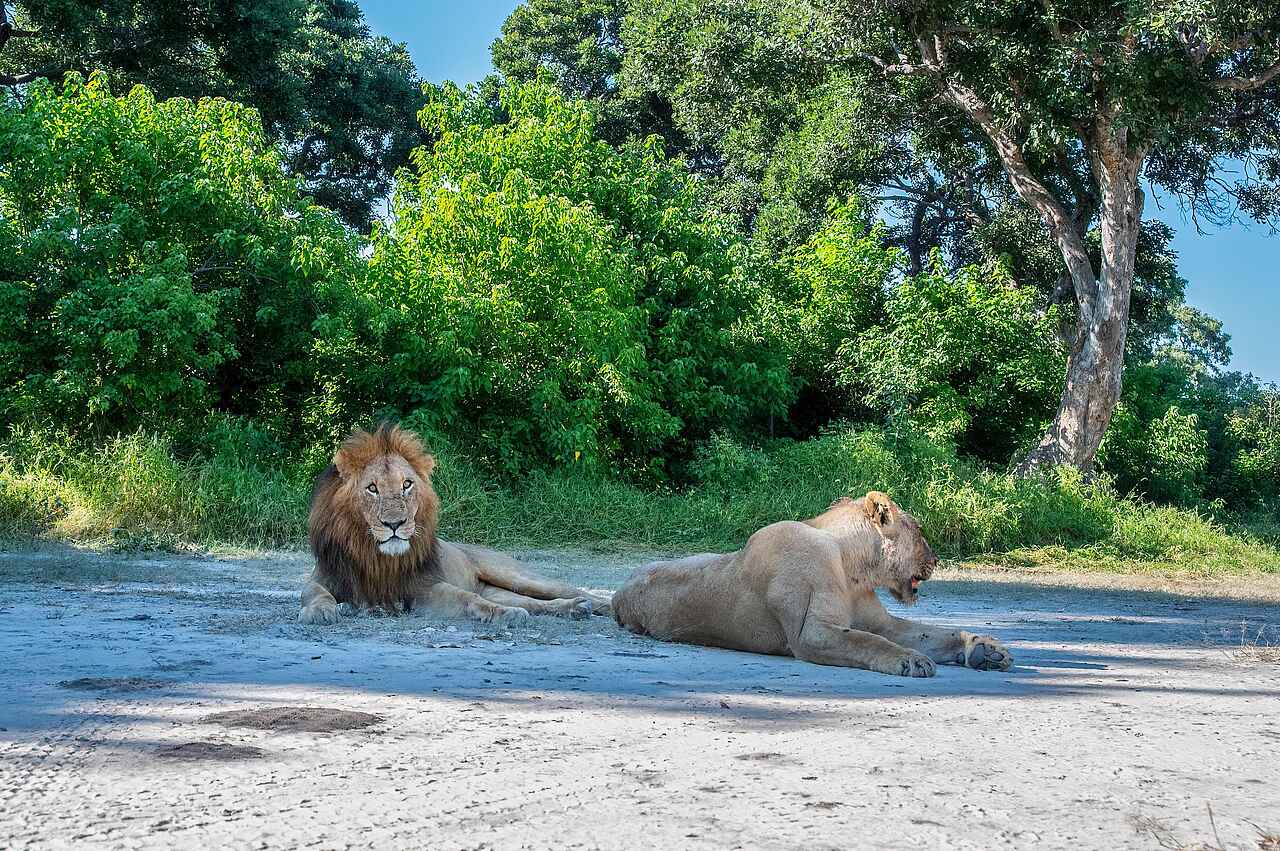 Raubtiere sind in der Umgebung ebenfalls reichlich vertreten: Löwen, Leoparden und Geparden durchstreifen die Savanne, während Tüpfelhyänen und die seltenen Afrikanischen Wildhunde auf der Jagd beobachtet werden können. Die Nähe zum Khwai-Fluss lockt Flusspferde und Krokodile an, und in den sumpfigen Uferzonen tummeln sich zahlreiche Vogelarten wie Eisvögel, Schreiseeadler, Sattelstörche und farbenprächtige Bienenfresser.