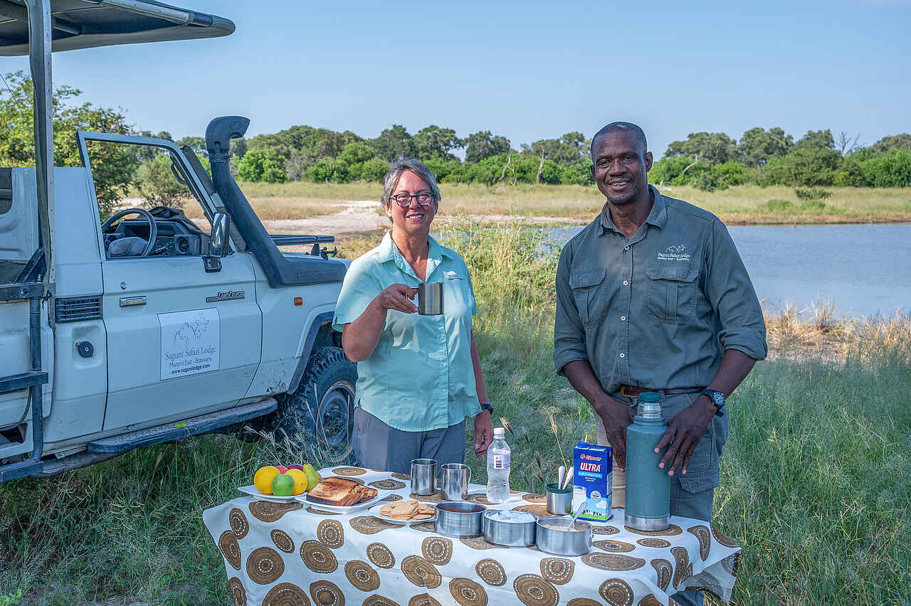 Die Saguni Safari Lodge bietet vielseitige Aktivitäten, um die Wildnis des Okavangodeltas hautnah zu erleben. Pirschfahrten führen ins Khwai-Konzessionsgebiet, eine der besten Safari-Regionen Botswanas, wo Elefanten, Giraffen, Flusspferde sowie Raubkatzen wie Löwen und Leoparden gesichtet werden können. Nachtfahrten eröffnen spannende Begegnungen mit Schakalen, Eulen und Honigdachsen.