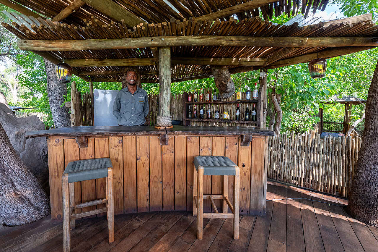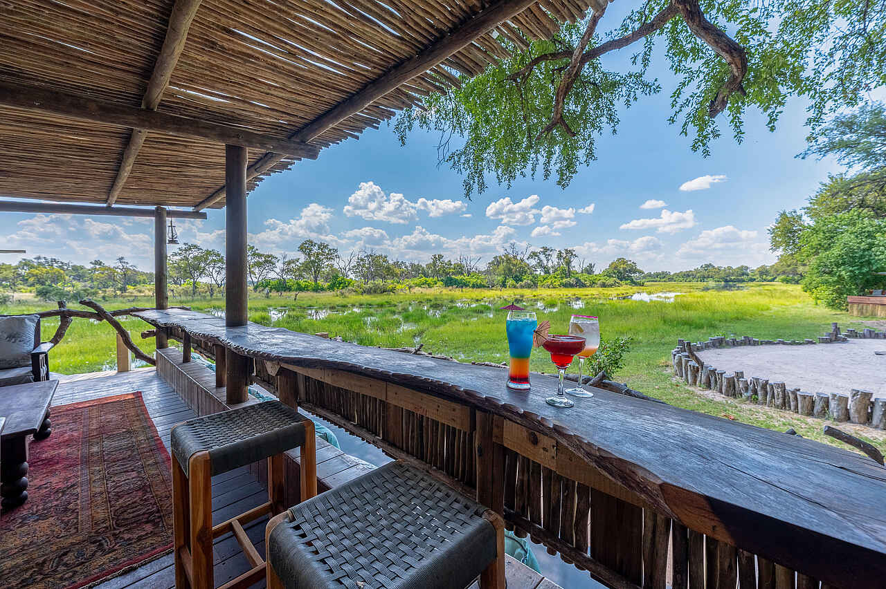 Im zentralen Bereich der Lodge lädt eine Lounge mit herrlichem Blick auf die Lagune zum Verweilen ein. Eine stilvolle Bar serviert erfrischende Getränke, während die großzügige Außenterrasse der ideale Ort ist, um den Tag mit einem Sundowner ausklingen zu lassen. Am Abend kann man sich an der Boma treffen, um in gemütlicher Runde die Eindrücke des Tages auszutauschen.