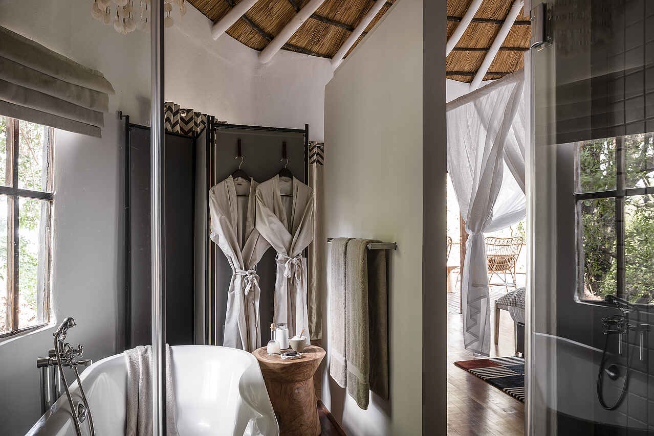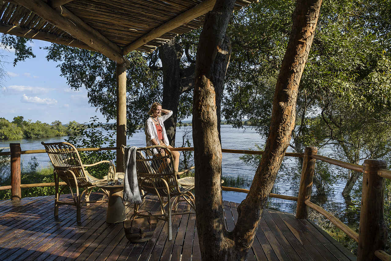 Die zwölf Baumhaus-Suiten sind erhöht auf Holzplattformen erbaut und verfügen über ein komfortables Schlafzimmer mit Kingsize-Bett, Moskitonetz, Klimaanlage, Deckenventilator, Tee- und Kaffeezubereitungsmöglichkeiten, Minibar und Safe. Die En-suite-Badezimmer sind mit Spültoilette, Doppelwaschbecken, Badewanne, Dusche, Haartrockner und Pflegeprodukten ausgestattet. Eine großzügige private Veranda eröffnet einen ungestörten Blick auf den Sambesi.