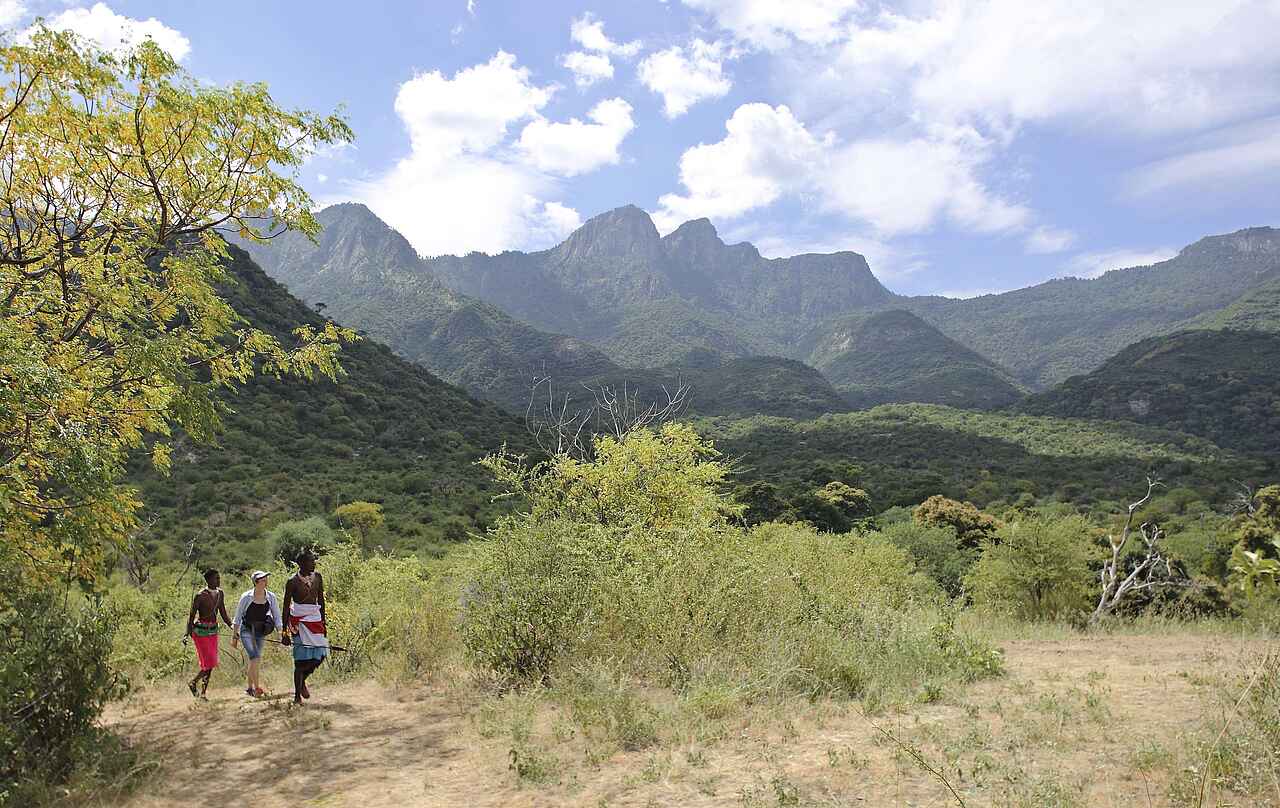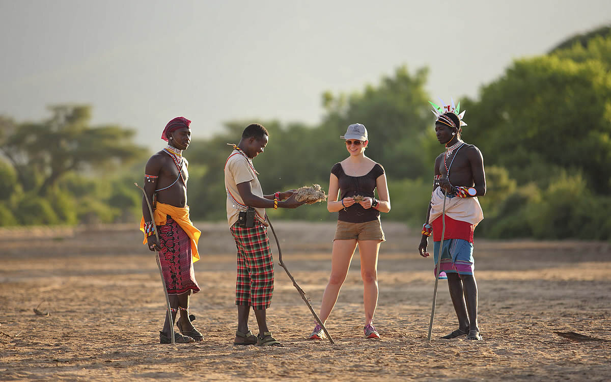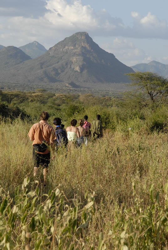 - Buschwanderungen: Mit der Postkartenlandschaft der Mathews Bergkette im Hintergrund durchqueren Sie zu Fuß die weiten Täler der Savanne und können hautnah von den Samburu Guides die Pflanzen, die Insekten, die Vögel, die Wildtiere und die uralten Traditionen kennen zu lernen.