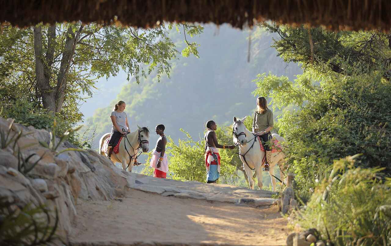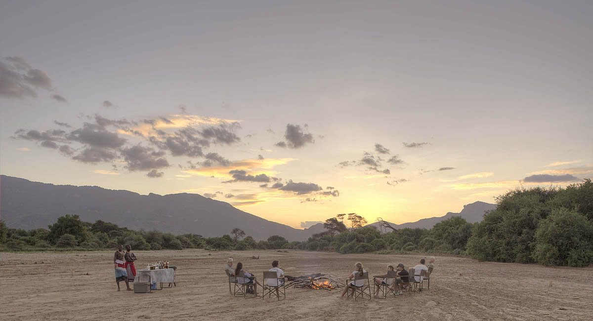Gemeinschaftliche Pirschfahrten in speziell angefertigten, offenen Allradfahrzeugen mit erfahrenen Guides; geführte Buschwanderungen mit Trackern; Wandern in den Wäldern der Mathews Mountains; Bergsteigen auf Eseln bis zur Spitze des Berges Ol Lolokwe; Fly Camping Safari mit Kamelen entlang des weißen Sandes der ausgetrockneten Flussbetten, sog. Luggas; Workshops im Kunsthandwerk; Busch-Picknick und Sundowner; Besuch der traditionellen Singing Wells des Volkes der Sumburu.