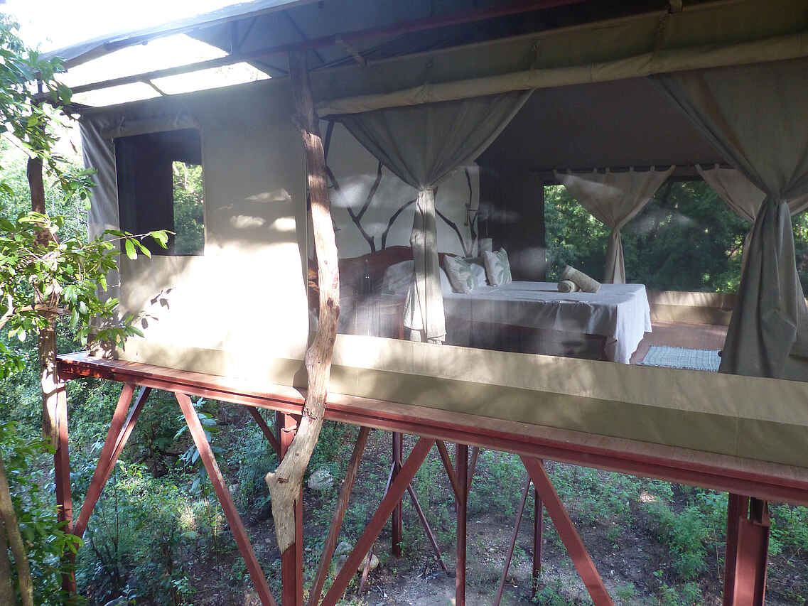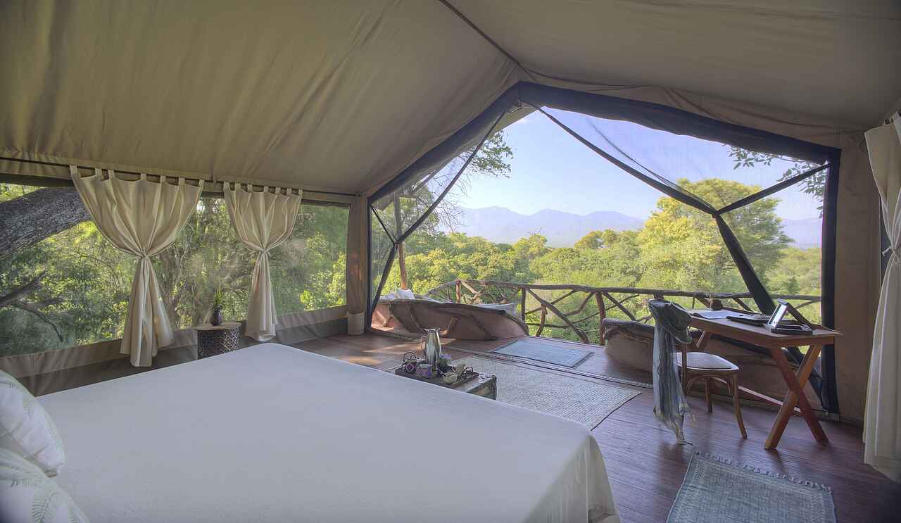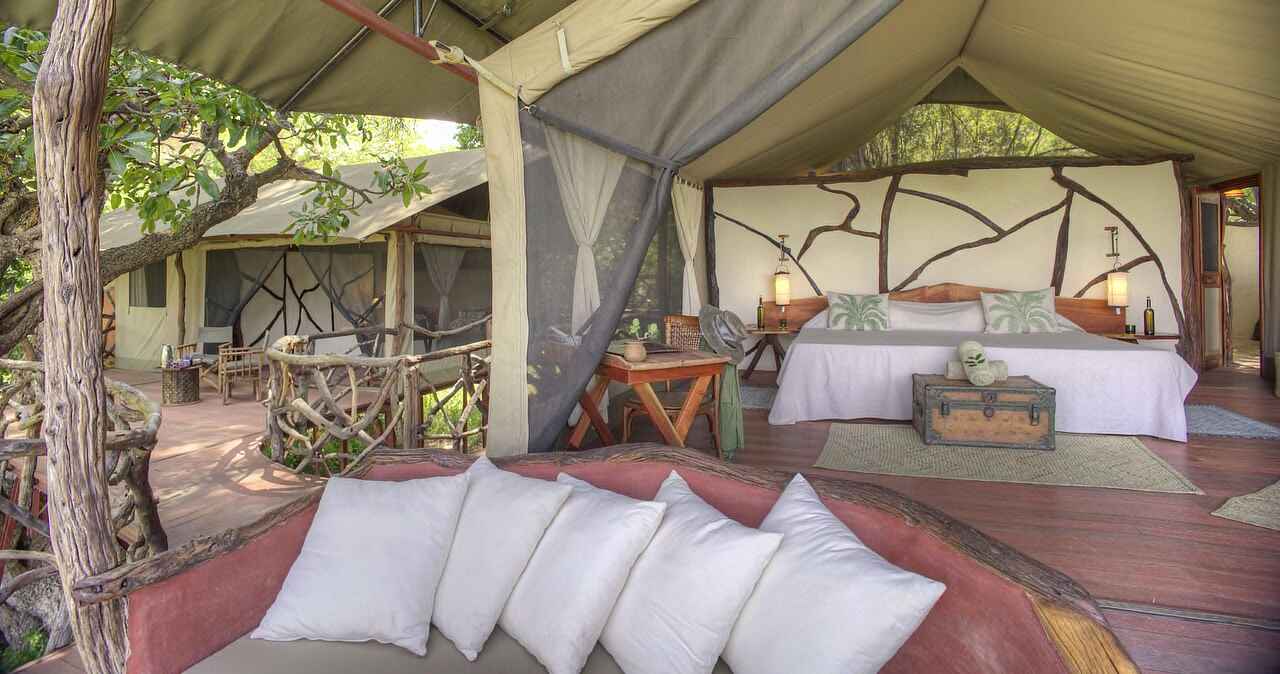 - Sarara Star Camp: Das Neueste im Sarara Camp ist das optional buchbare Star Camp. Es liegt eine zweieinhalb Stunden Wanderung zu Fuß oder zu Pferd durch den Wald vom Camp entfernt. Kamele tragen die Ausrüstung und das Gepäck, geführt von Samburu-Hütern, so dass Sie sich einzig auf die Flora und Fauna konzentrieren können. Mit etwas Glück erspähen Sie eine seltene Brazzameerkatze oder einen Schwarz-weißen Stummelaffen, afrikanische Wildhunde und prähistorische Palmenarten. Bei Ankunft erwartet Sie ein sagenhafter Ausblick über den Norden Kenias, den Sie auch vom natürlichen Fels Pool aus, gespeist von klarem Bergwasser, genießen können. Nach dem Dinner um das Lagerfeuer, verbringen Sie die Nacht unter den Sternen in komfortablen Moskitonetz-Zelten. Weitere Ausstattung sind eine Eimerdusche mit heißem Wasser sowie Toiletten.