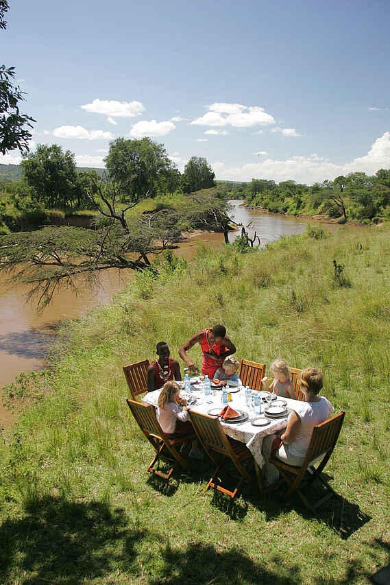 Per Auto: ca. 5,5 Std. von Nairobi. Per Flugzeug: 2 nahegelegene Airstrips werden täglich angeflogen (Flugdauer ja ca. 90 Min,), der Transfer zum Camp dauert jeweils ca. 2 Std.