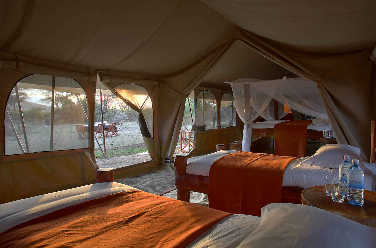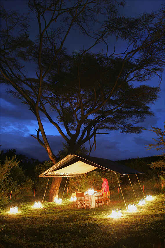 Luxus-Zeltcamp in einer abgelegenen Region der Mara North Conservancy, nur 3 Zelte, intime Safarierfahrung, Massai-Guides, Nachtpirschfahrten, italienische Küche.