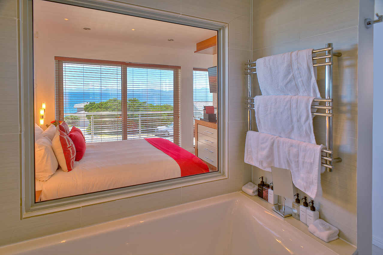 Es gibt folgende Zimmertypen und Suiten unterschiedlicher Größe: Master Suite, Owners Suite, Bay View Room, Honeymoon Suite, Expedition Room, und zweimal Roooftop Rooom. Alle Zimmer haben Terrassen oder Balkons mit Blick auf die Walker Bay. Ausstattung: Klimaanlage, Fußbodenheizung, Tee/Kaffee, TV, WLAN. Private Bäder mit Dusche Waschbecken und WC. Einige der Zimmer haben eine Badewanne. Die Zimmer sind elegant und modern eingerichtet. Helle Farben bilden kontrastieren mit bunten Elementen.