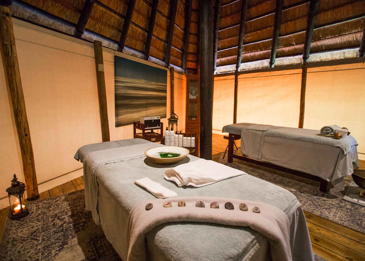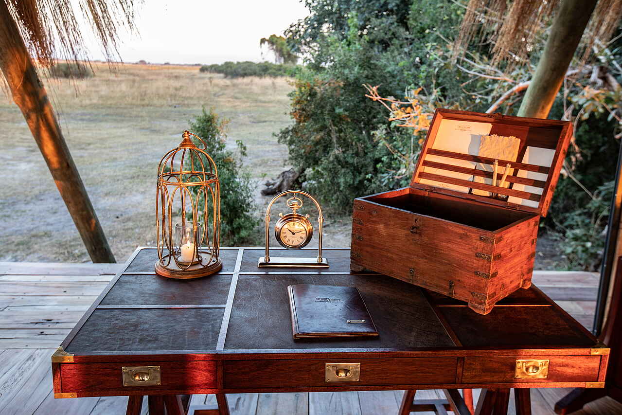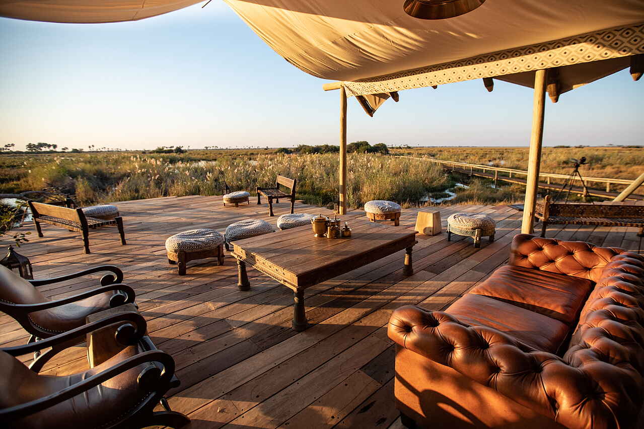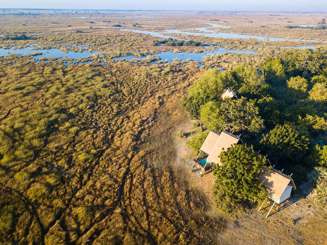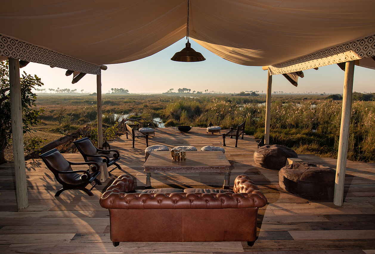 Auf erhöhten Holzplattformen stehen drei große, geschmackvoll eingerichtete, mit Reet bedeckte Zeltsuiten, die aussehen, als wären drei gegeneinander abgestufte Zelte ineinander geschoben worden. Jedes Zelt verfügt über eine große Veranda mit Blick über die Savanne, ein privates Badezimmer und einen eigenen Plungepool. Es besteht absolute Privatsphäre durch die großen Abstände zwischen den Zelten. Bis auf die Veranda können alle Bereiche der Zelte mit Fliegengittern geschützt oder mit Leinwänden ganz verschlossen werden.