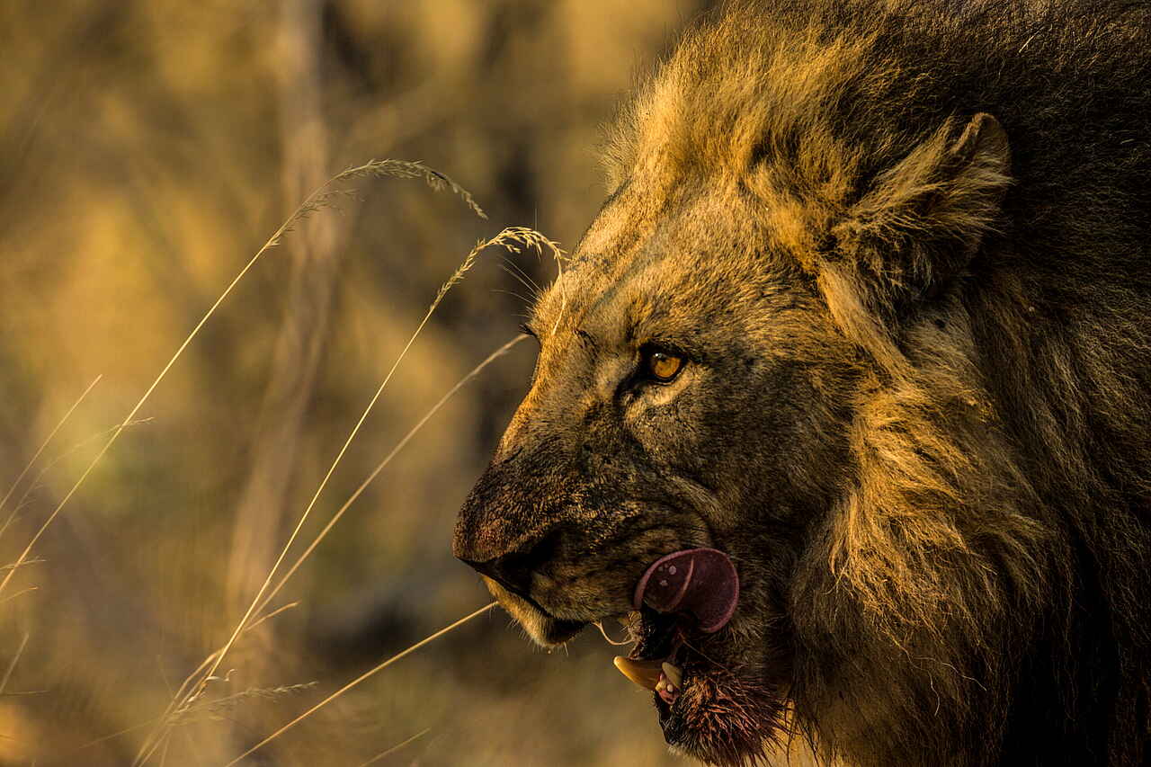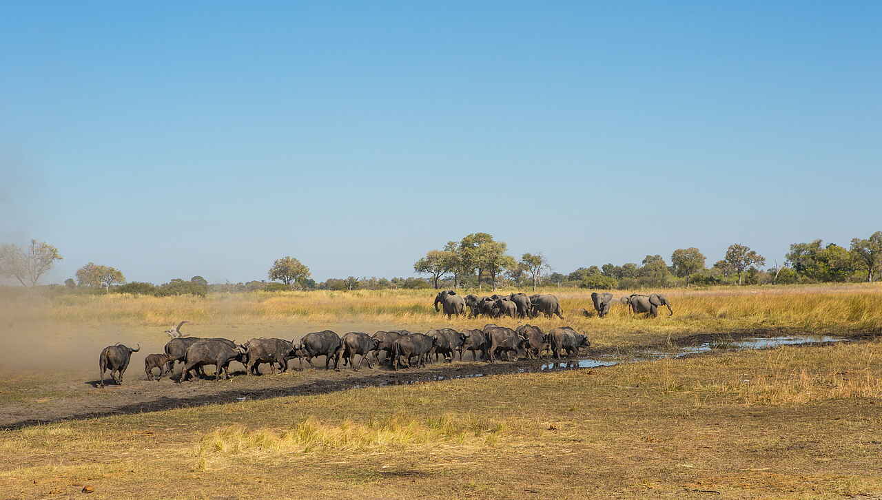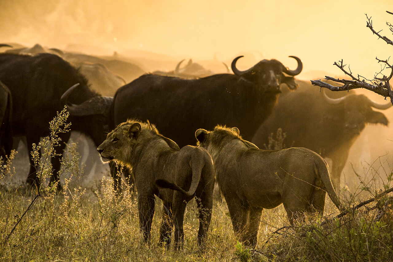 Außerdem auf der Buschbühne: Säbelantilopen, Zebras, Gnus, Tsessebes, Buschböcke, Duiker, Büffel, Wasserböcke, Giraffen, Nilpferde, Ginsterkatzen, Zibetkatzen, Stachelschweine, Honigdachse, verschiedene Mangustenarten, Erdwölfe, Warzenschweine, Paviane, Grüne Meerkatzen, Buschbabys (Galagos) und Kapotter.