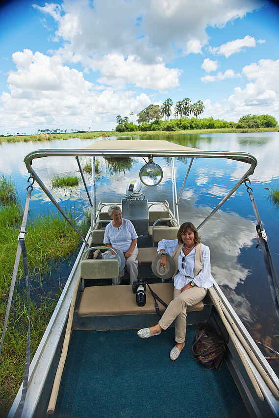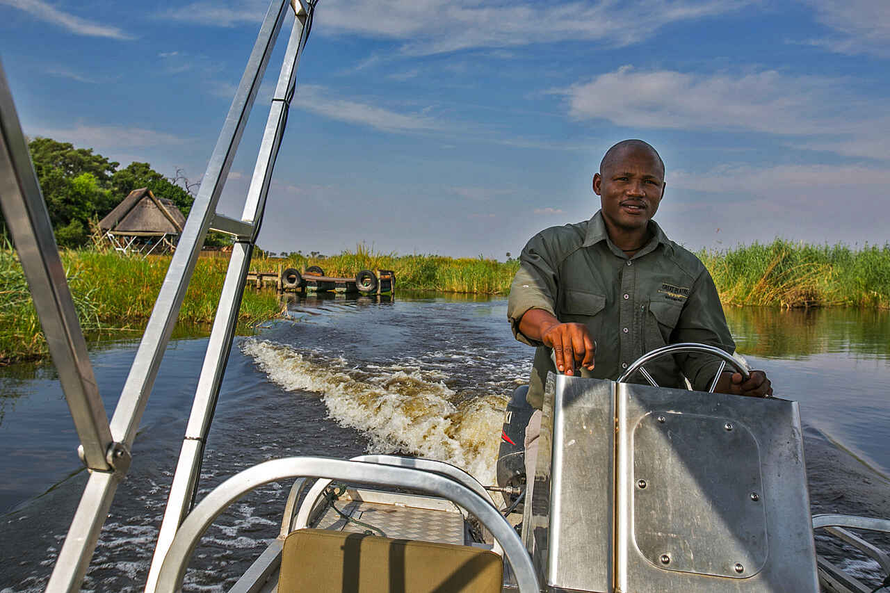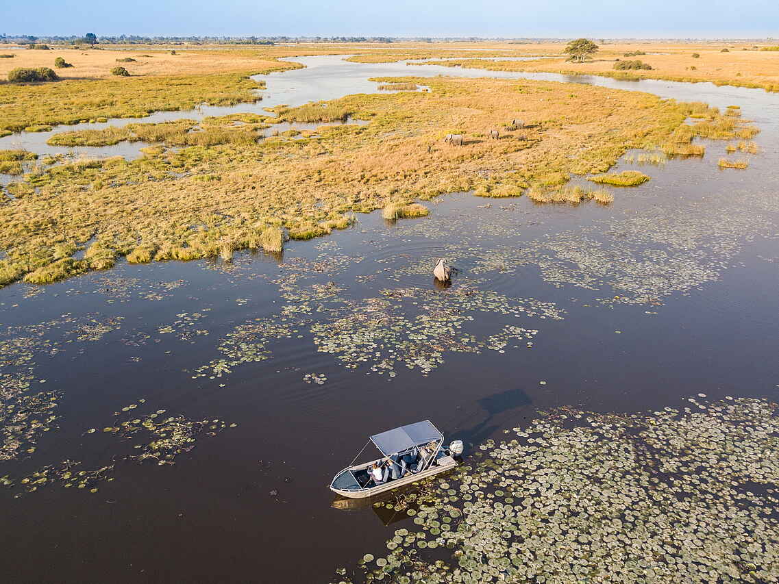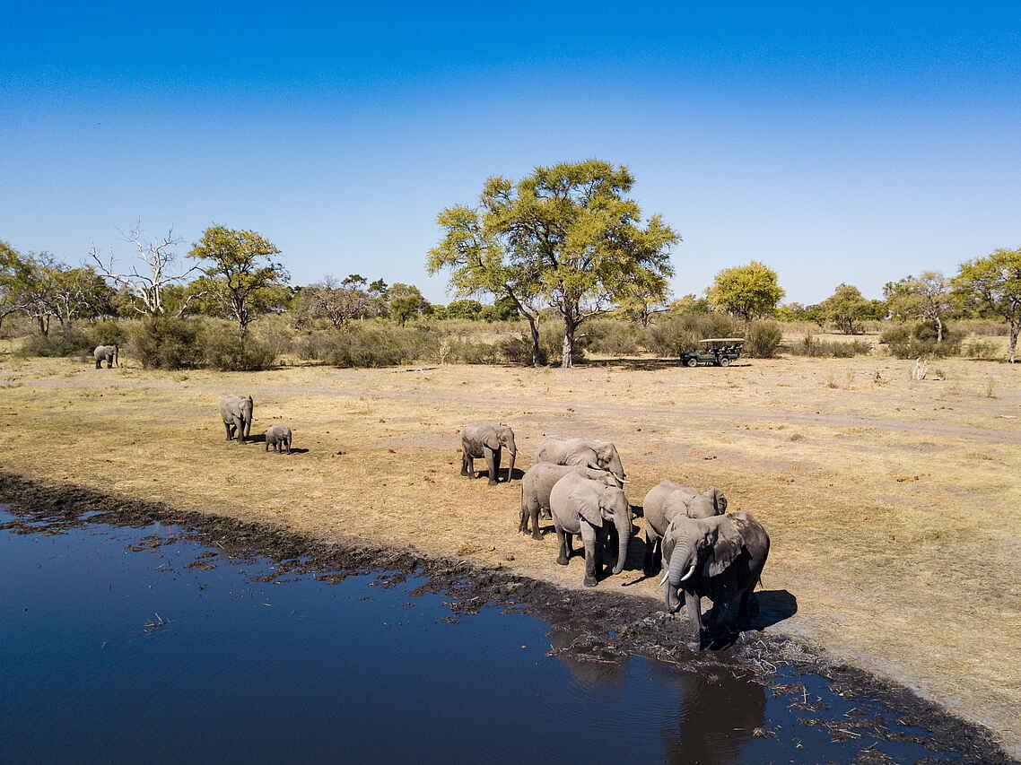 Im Kleinflugzeug 155 km / 45 Min. ab Maun, 190 km / 50 Min. ab Kasane zum Selinda-Airstrip. Dann 40 Min. Transfer im Allradfahrzeug, zum Schuss im Boot, um den Selindaspillway zu überqueren.