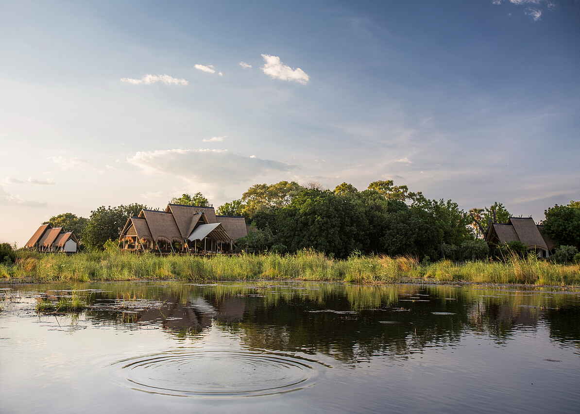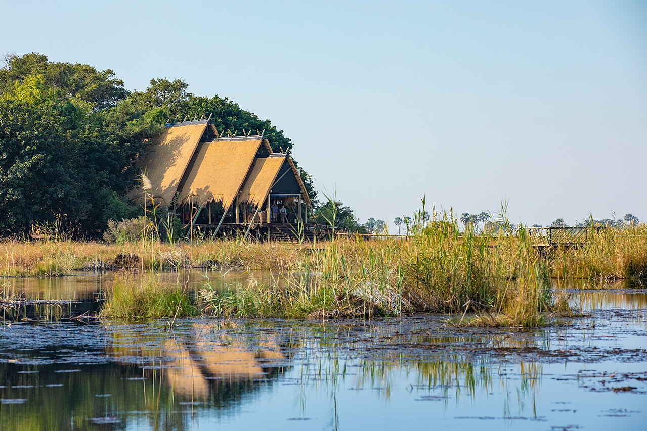 Das Selinda Camp liegt in Ufernähe am Zusammenfluss von Selinda Spillway und Linyanti River. Architektonisch ist es dem Baustil der Dorfhütten nachempfunden, die außerhalb des Reservates liegen: Schilf und andere natürliche Fasermaterialien werden zum Decken der Dächer genutzt. Die 5 abgestuften Dächer verleihen dem Haupthaus seine charakteristische Silhouette. Zwischen den Dachstufen bestehen Zwischenräume, durch die die Luft zirkulieren kann.