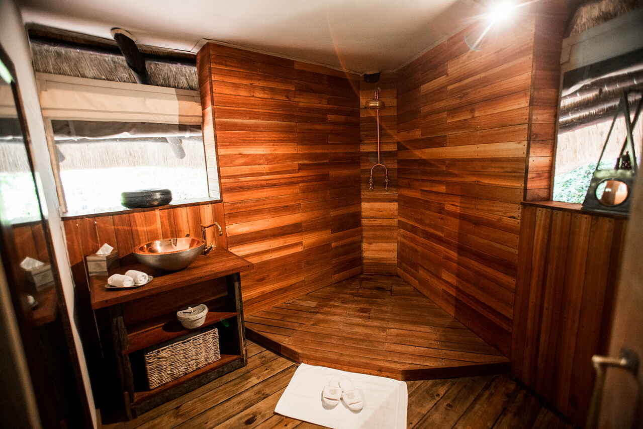 Ausgestattet sind die Zelte mit einer Bar und Kühlschank, mit Getränken nach Wahl sowie einer Kaffee- und Teestation. Im Schlafbereich steht ein Doppelbett mit Moskitonetz, das auch zu zwei Einzelbetten umkonfiguriert werden kann. An der Decke sind Ventilatoren montiert und zusätzlich gibt es Eco-Cooling-Systeme, die über den Betten für Kühlung sorgen. Die Badezimmer haben fließend Kalt- und Warmwasser, eine Kupferbadewanne, Innen- und Außendusche, Toilette mit Wasserspülung und einen Waschtisch mit Doppelwaschbecken. Verschiedene Kosmetikartikel sowie Haartrockner stehen zur Verfügung.