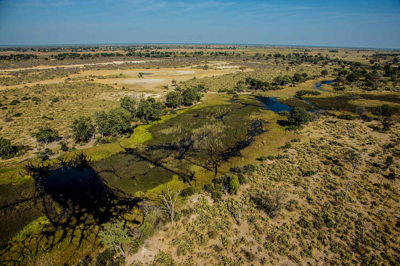 Linyanti-Region, im privaten Selinda-Reserve am östlichen Ende des Selinda Spillway, etwa 100 m von dessen Ufer entfernt. Das Selinda Camp liegt im 320.000 Hektar großen Selinda Reserve, einem privaten Konzessionsgebiet. Es befindet sich am Ufer des Selinda Spillway, eines Flusslaufs, der lange Jahre ausgetrocknet war. Seit 2009 jedoch führt der Selinda Spillway saisonal Wasser, was dem Tier- und vor allem dem Vogelreichtum deutlich zugutekommt. Wer möchte, kann seitdem auch auf einer mehrtägigen Walking- und Kanusafari über 45 km dem Selinda Adventure Trail folgen.