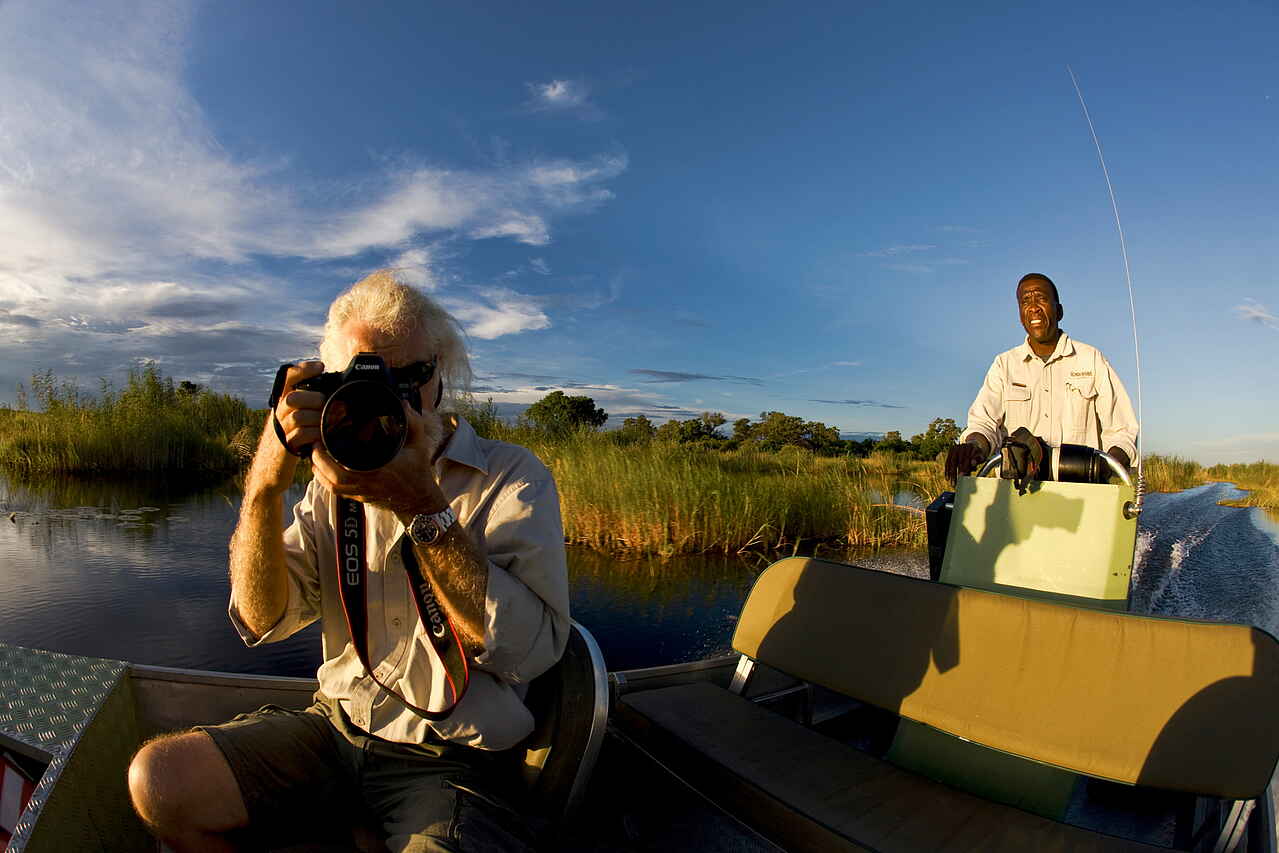 Pirschfahrten morgens und nachmittags/abends im offenen Allradfahrzeug, auf Wunsch auch Tagesausflüge. Die Land Cruiser sind speziell an die Wünsche von Fotografen angepasst und für Fotografie umgebaut und sind mit Snacks und Getränken bestückt. Es werden geführte Buschwanderungen angeboten, die besonders am Morgen eindrucksvoll sind. Je nach Wasserstand kann man mit dem Motorboot oder Kanu den Selinda Spillway erkunden. Es gibt Tierbeobachtungsunterstände und auch Angeln ist zwischen März und Dezember möglich.