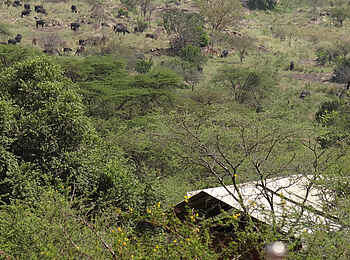 Nordwest-Tansania, Lobo-Region, im Norden des Serengeti-Nationalparks, am Fuße der Ndasiata Hills am Ufer des Grumeti. Das Camp liegt umgeben von einem kleinen Wäldchen im Grasland.
