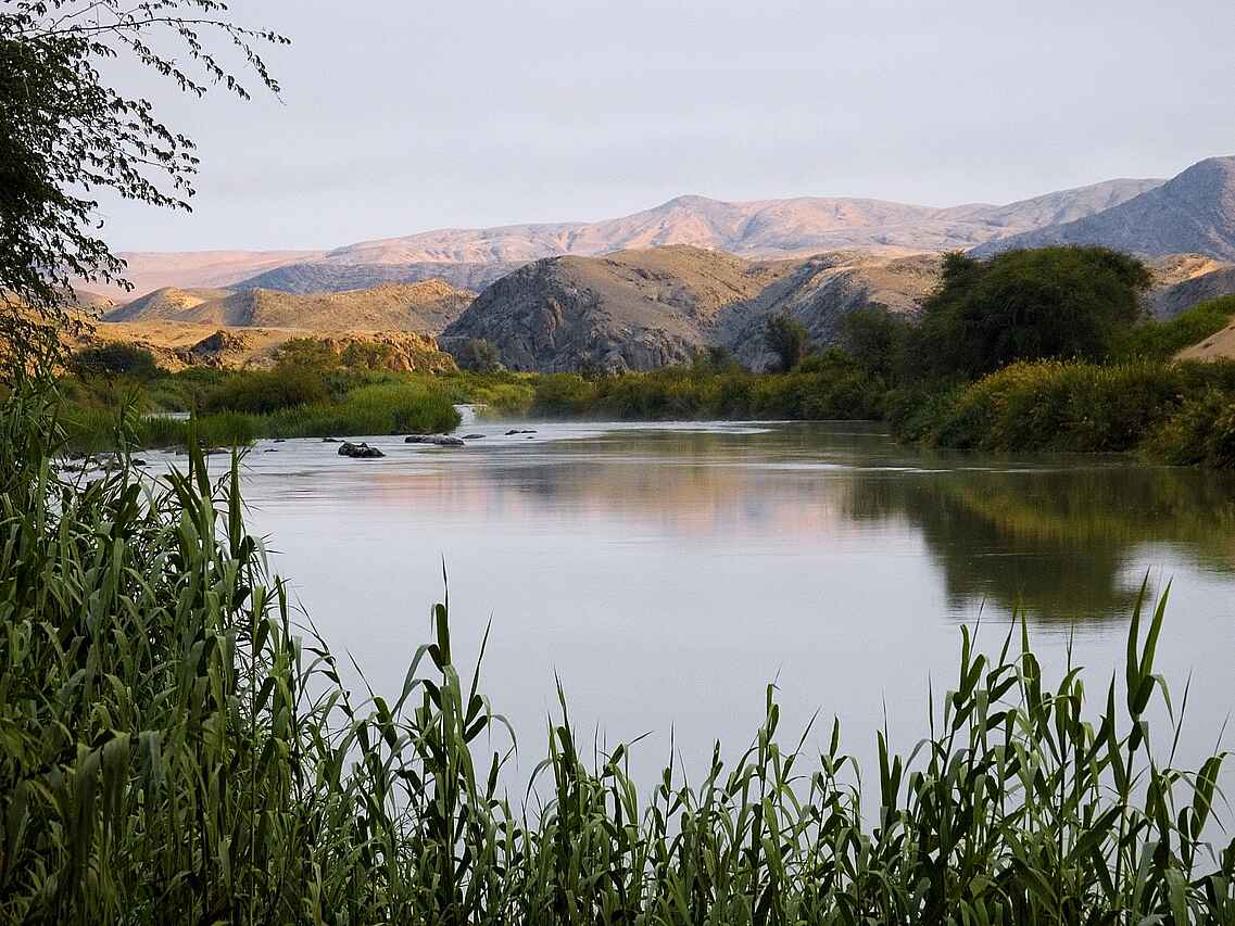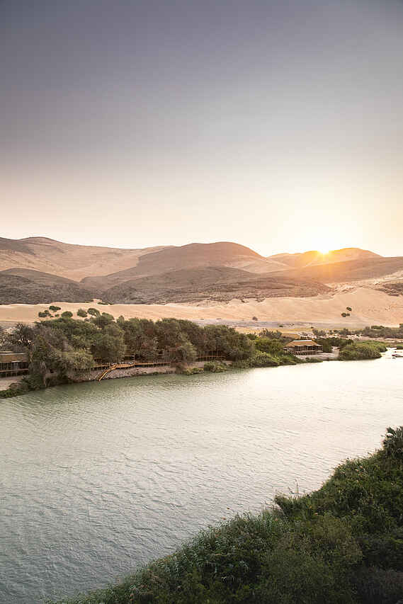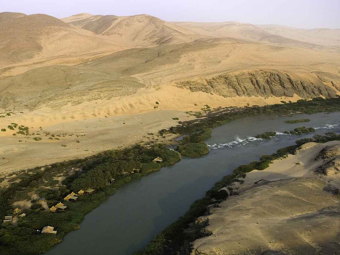 Die Serra Cafema Lodge liegt im äußersten Norden Namibias in der Kunene Region direkt am Ufer des Kunene Flusses nahe der Grenze zu Angola. Die abgelegene Lage in einer der ursprünglichsten Regionen des Landes macht diese Lodge zu einem außergewöhnlichen Safaricamp. Das Landschaftsbild ist geprägt von Bergen, Flussläufen und offenen Ebenen und vermittelt intensive Eindrücke abseits klassischer Safari Routen. Neben landschaftlichen Eindrücken prägen Begegnungen mit den semi nomadischen Himba Gemeinschaften den Aufenthalt. Tierbeobachtungen erfolgen in einem wenig erschlossenen Lebensraum, der sich deutlich von klassischen Wildgebieten im südlichen Afrika unterscheidet. Es ist ein Ort, an dem außergewöhnliche Abgeschiedenheit, markante Geologie und Abstand zum modernen Alltag zusammenkommen.