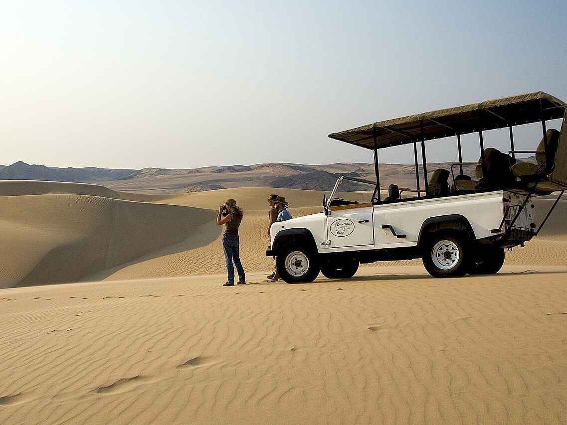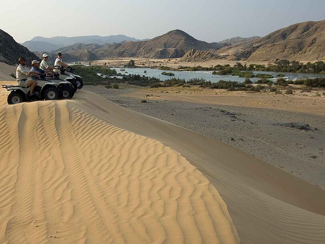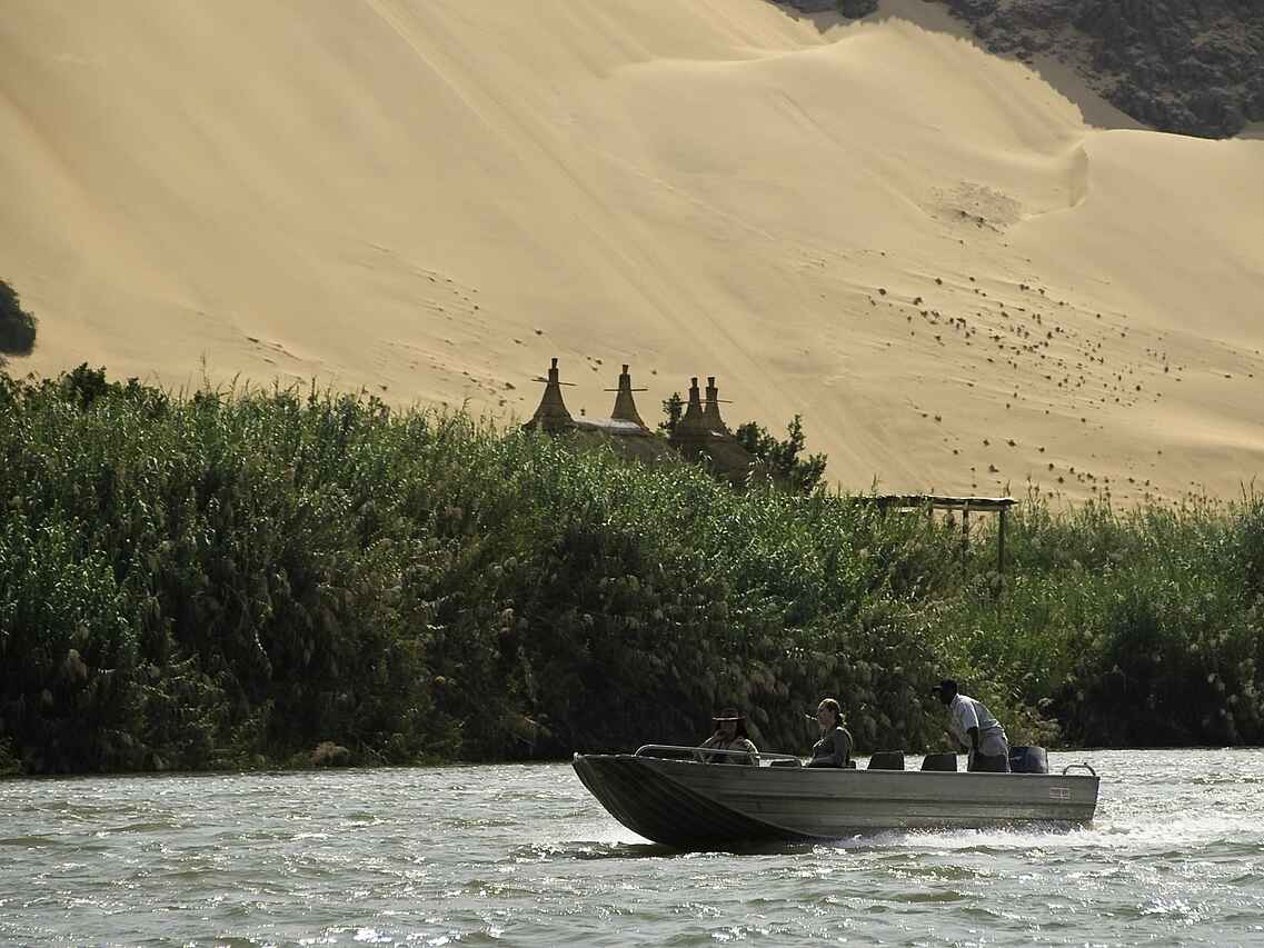 Die Aktivitäten der Serra Cafema Lodge unterscheiden sich deutlich von klassischen Safari Angeboten. Geführte Naturfahrten erfolgen in offenen Geländewagen und konzentrieren sich auf die Tierwelt entlang des Kunene Flusses und in den umliegenden Ebenen. Ergänzend werden Wanderungen angeboten, bei denen Pflanzenwelt, Spurenlesen und geologische Besonderheiten im Fokus stehen. Bootsfahrten auf dem Kunene ermöglichen Beobachtungen von Flusspferden, Krokodilen und Wasservögeln. Ein zentraler Bestandteil des Aufenthalts sind kulturelle Besuche bei den Himba Gemeinschaften, die Einblicke in traditionelle Lebensweisen geben.