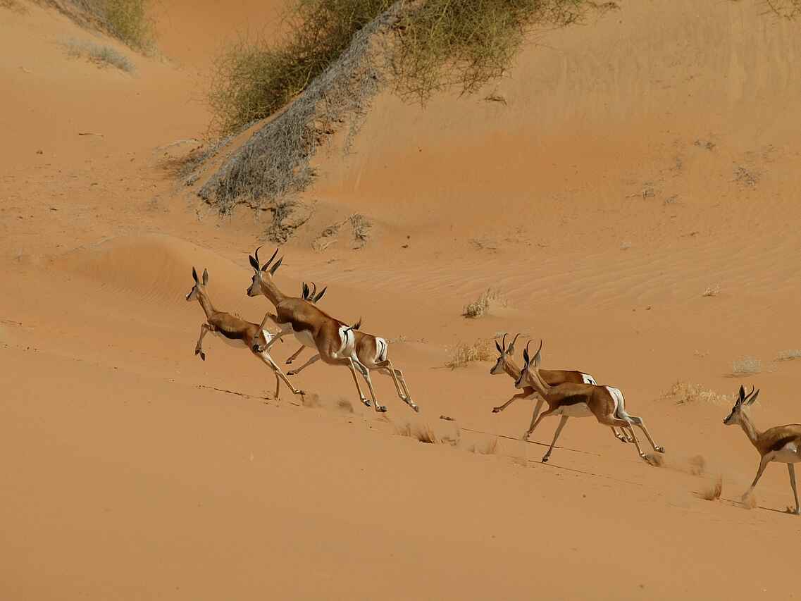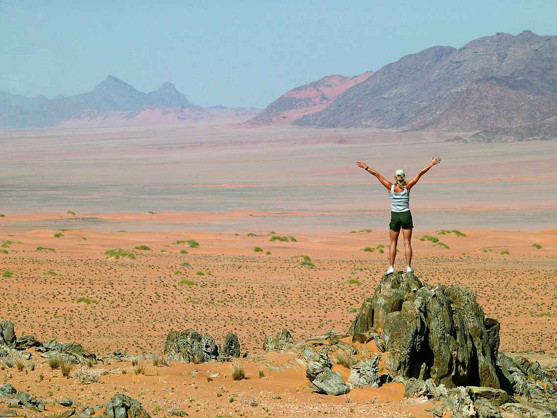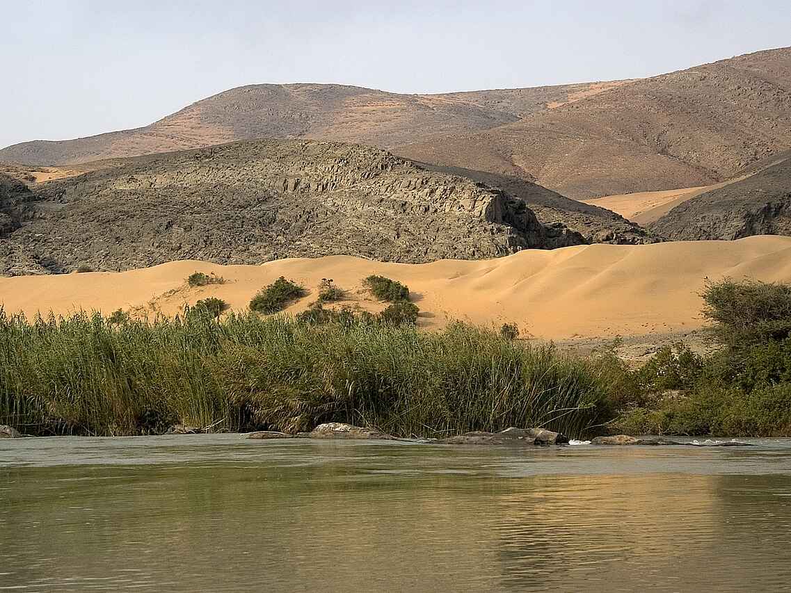 Die Kunene Region ist ganzjährig trocken mit warmen bis heißen Temperaturen. Die beste Reisezeit liegt zwischen April und Oktober, wenn die Temperaturen moderater sind und Aktivitäten tagsüber angenehm bleiben. In den Sommermonaten von November bis März kann es sehr heiß werden, insbesondere zur Mittagszeit. Niederschläge sind selten und meist lokal begrenzt. Tierbeobachtungen entlang des Flusses sind ganzjährig möglich, da Wasser eine konstante Lebensgrundlage darstellt. Die Wintermonate eignen sich besonders für Wanderungen und längere Aktivitäten im Freien.