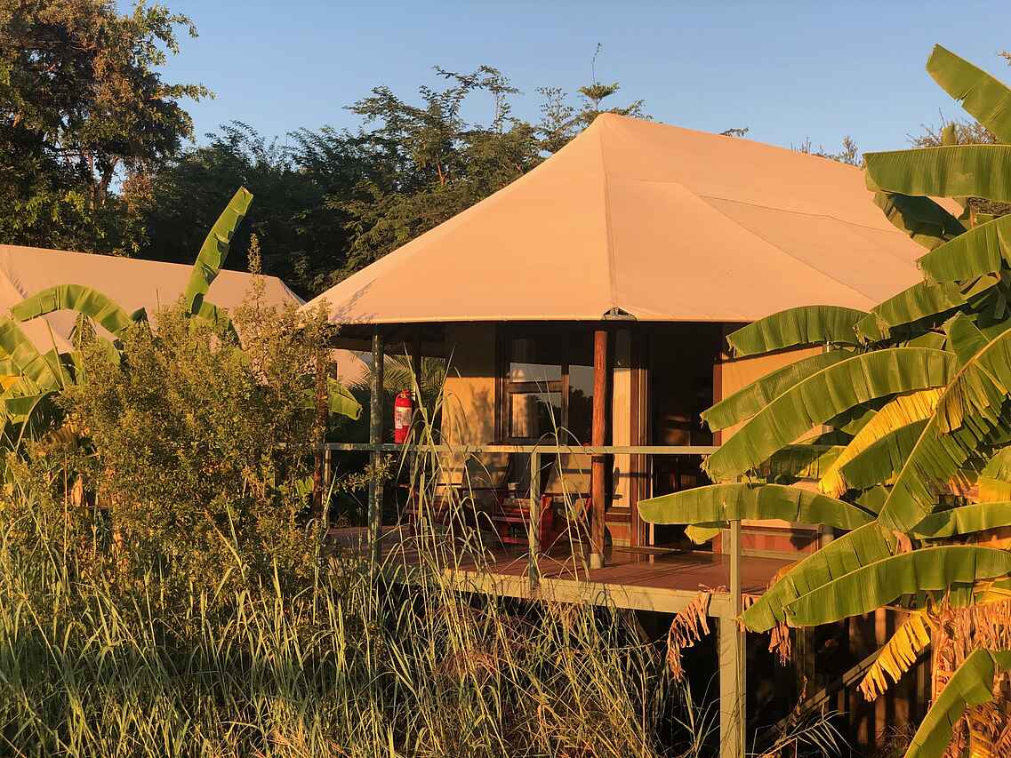 Die Shametu River Lodge befindet sich im Caprivi-Streifen in Namibia, direkt am Ufer des Okavango-Flusses mit Blick auf die Popa-Fälle. Diese Lodge zeichnet sich durch ihre spektakuläre Lage am Wasser aus und verfügt über einen großen Pool. Die Nähe zum Bwabwata-Nationalpark ermöglicht exzellente Tierbeobachtungen, darunter Elefanten, Flusspferde und Krokodile. Während Bootstouren und traditionellen Mokorofahrten genießen Gäste eine einzigartige Perspektive auf die Tierwelt und die malerische Landschaft. Die Lodge ist ideal für Naturliebhaber, die Komfort und Abenteuer gleichermaßen schätzen.