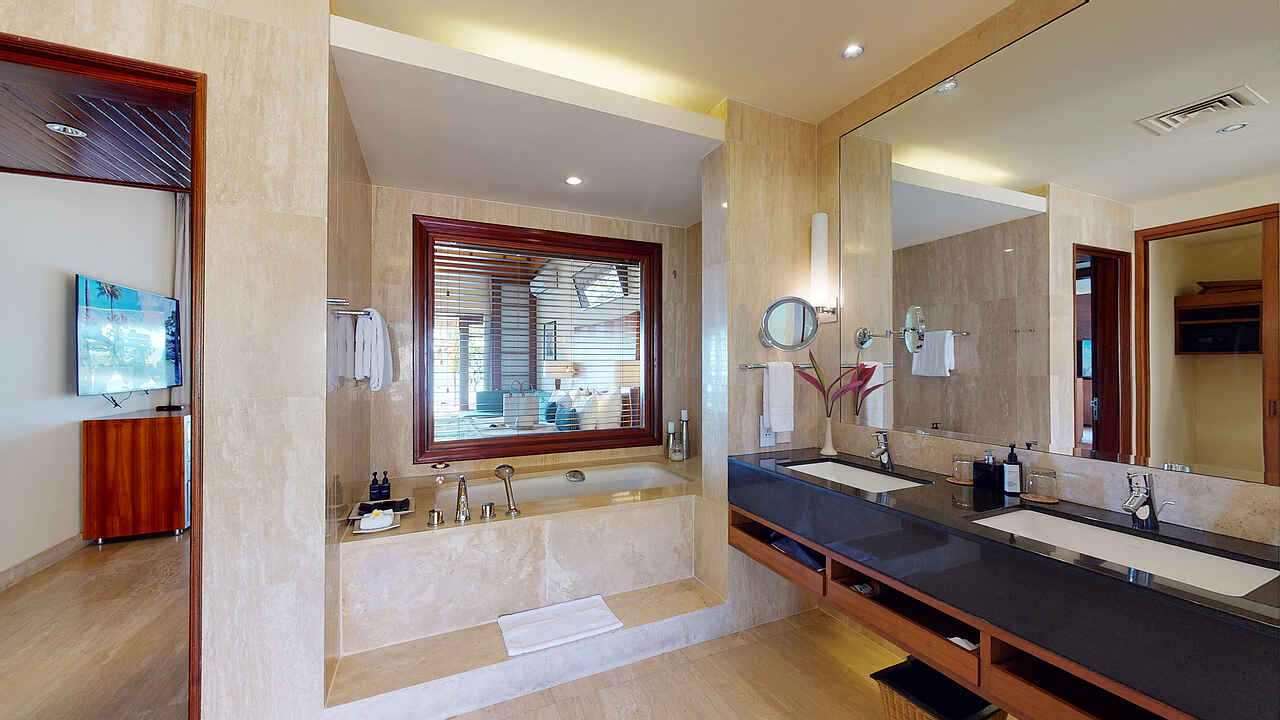 Die Innenräume zeichnen sich durch eine geschmackvolle Einrichtung mit großzügigen, komfortablen Betten, Panoramafenstern und modernen Unterhaltungssystemen aus. Zur Ausstattung gehören High-Speed-WLAN, Kaffee- und Teezubereitungsmöglichkeiten sowie eine Espressomaschine. Die luxuriösen Badezimmer bieten hochwertige Annehmlichkeiten wie Doppelwaschbecken, Regenduschen und Badewannen. Familienfreundlichkeit wird großgeschrieben: Viele Suiten und Villen können mit zusätzlichen Betten, Babybetten oder Doppelstockbetten für Kinder ausgestattet werden, um den Bedürfnissen von Familien gerecht zu werden.