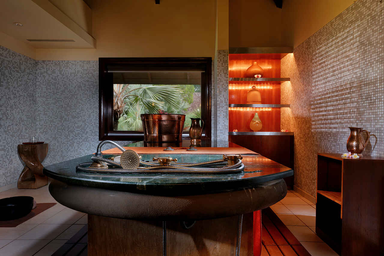 Für umfassende Entspannung sorgt das weitläufige Spa, das 25 Behandlungsräume, einen Yoga-Pavillon und Meditationsbereiche umfasst. Authentische Ayurveda-Behandlungen, wohltuende Massagen und hochwertige Schönheitsanwendungen stehen zur Verfügung. Zusätzlich bietet das Resort ein modernes Fitnesscenter, Tennisplätze sowie eine gut ausgestattete Bibliothek mit Büchern, Magazinen und Gesellschaftsspielen, die für Unterhaltung und Abwechslung sorgen.