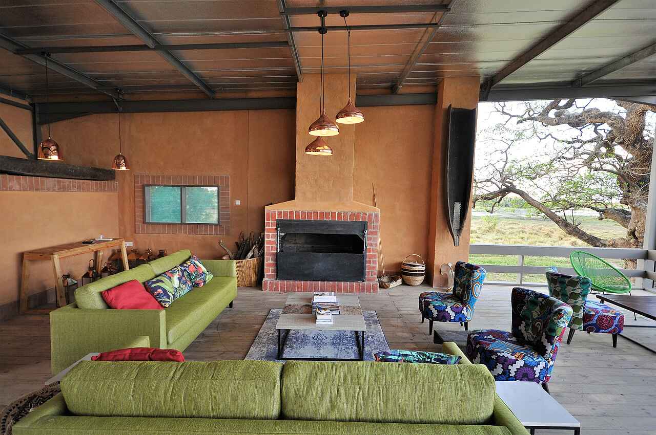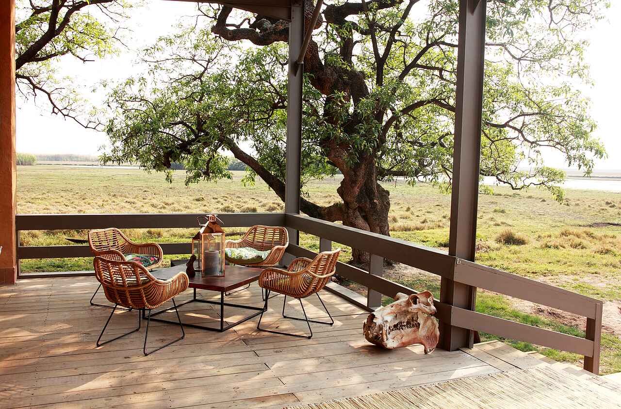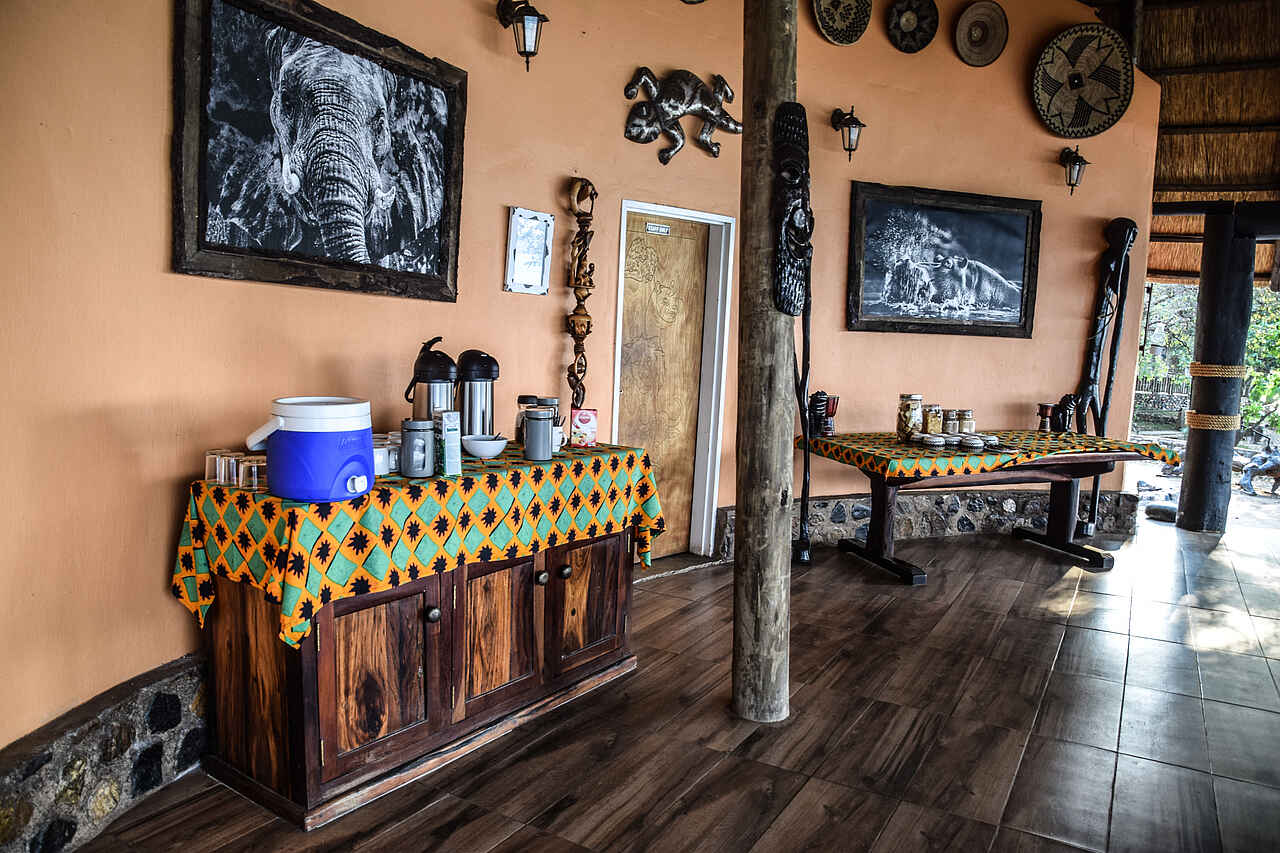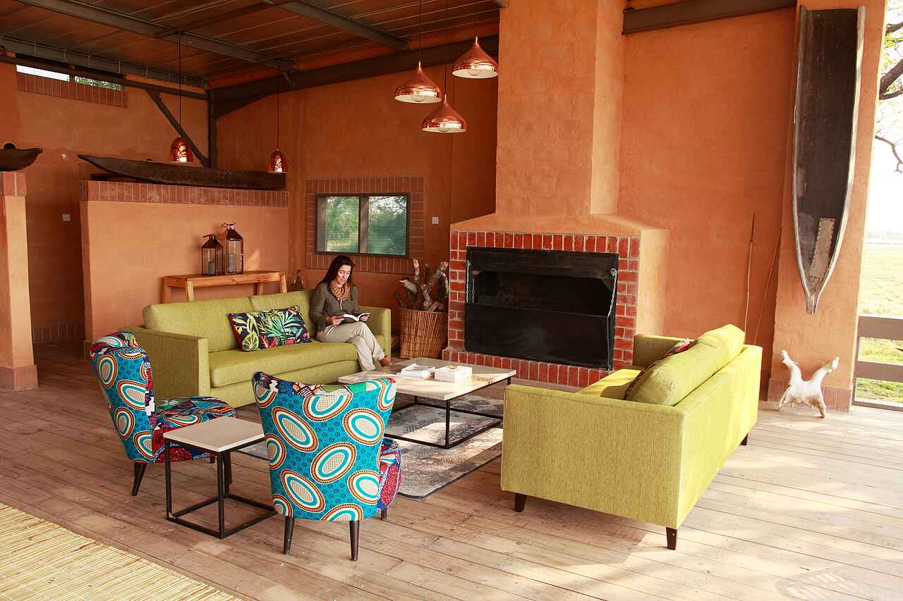 Der Hauptbereich des Shoebill Island Camp besteht aus einem offenen Lounge- und Essbereich, gebaut auf einer kleinen Insel zwischen Schilf und Wasserflächen. Hier stehen Sitzgelegenheiten aus Holz und Canvas bereit, immer mit Blick auf die Feuchtgebiete. Am Feuer werden abends Geschichten erzählt und Safari-Erlebnisse geteilt, während tagsüber die Ruhe des Sumpfgebietes im Vordergrund steht. Die Atmosphäre ist bodenständig, warm und auf Gemeinschaft ausgelegt. Die Infrastruktur bleibt bewusst naturverbunden, denn das Camp konzentriert sich darauf, Gäste nah an das Wildnisgefühl der Bangweulu Wetlands heranzuführen.