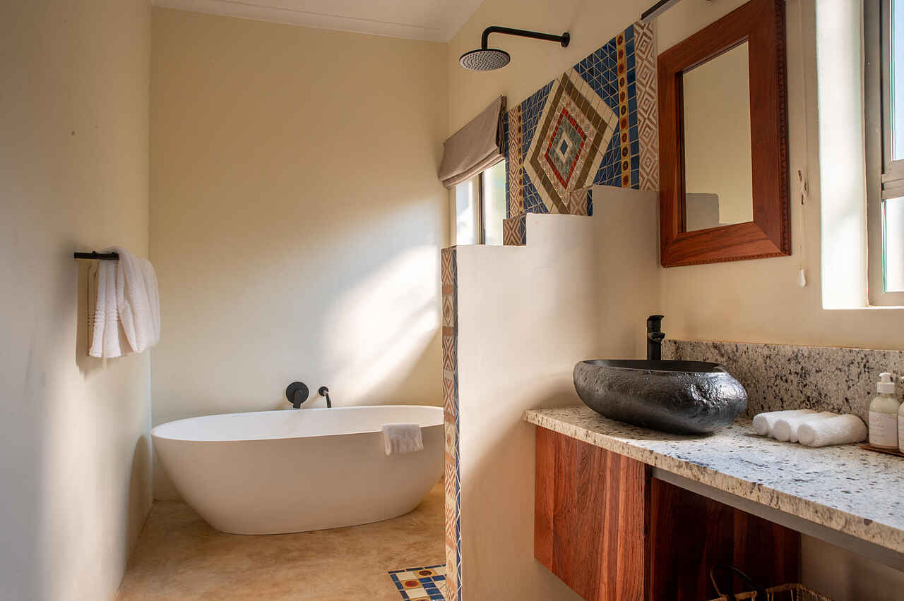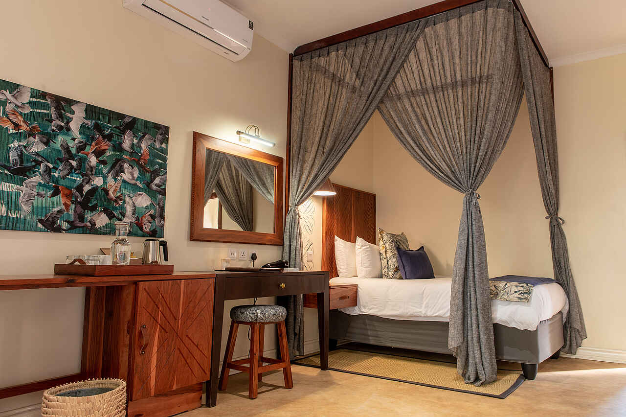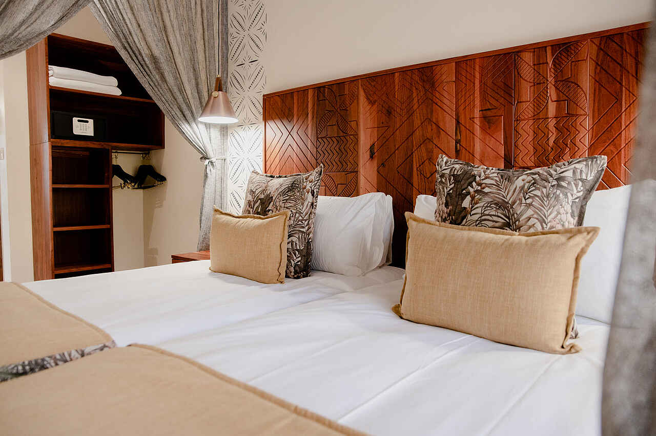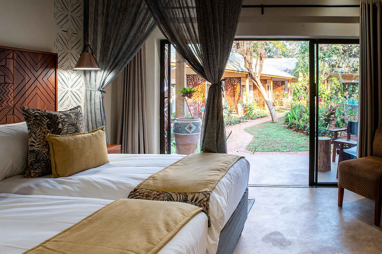Die 19 Zimmer der Lodge präsentieren sich stilvoll und behaglich und bieten genau den Rahmen, um nach einem erlebnisreichen Tag zur Ruhe zu kommen. Ein bequemes Doppelbett oder zwei getrennte Betten mit Moskitonetz sorgen für einen erholsamen Schlaf. Ein Schreibtisch, eine Klimaanlage, ein Safe sowie Tee und Kaffee auf dem Zimmer erhöhen den Komfort zusätzlich. Die En-suite-Badezimmer sind modern gestaltet und verwöhnen mit Regendusche, freistehender Badewanne, Doppelwaschbecken, flauschigen Handtüchern und hochwertigen Pflegeprodukten. Gäste der Honeymoon-Suite genießen außerdem eine Outdoor-Dusche.