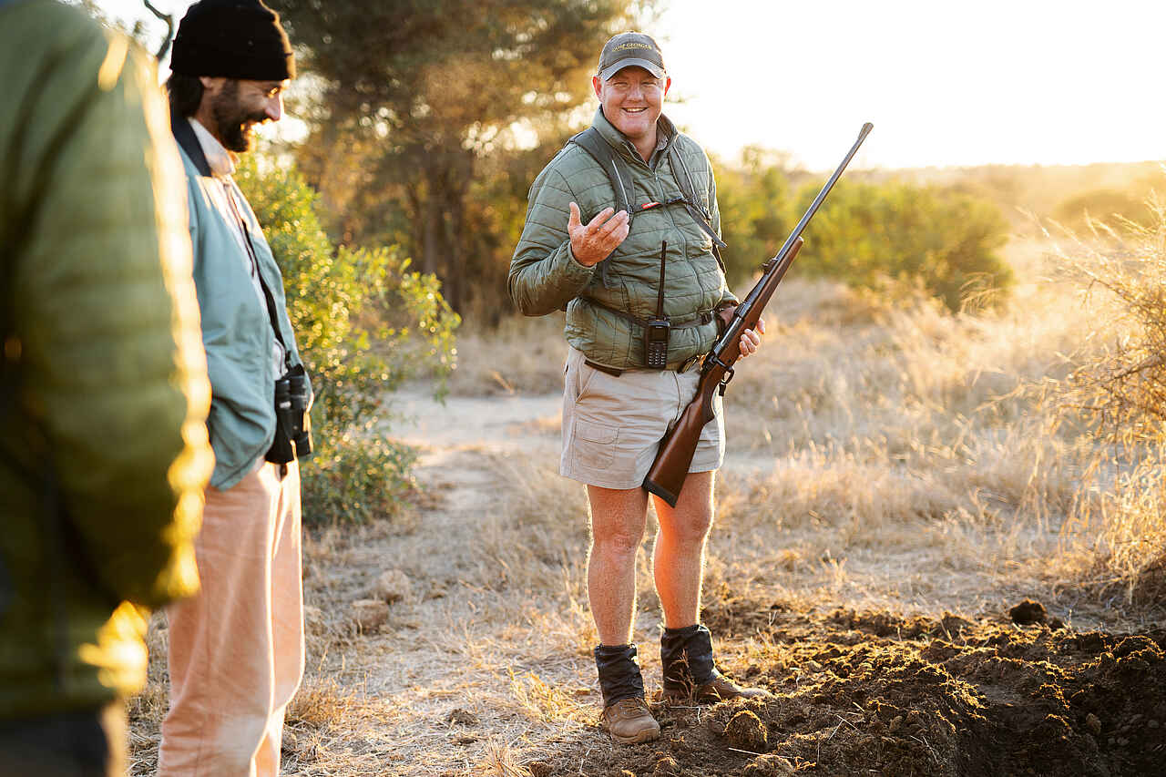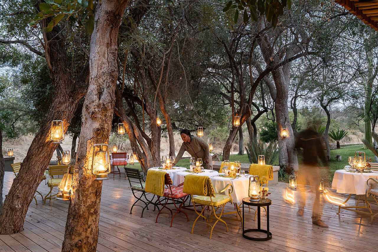 Zweimal täglich geht es im offenen Geländewagen mit erfahrenen Guides auf Pirschfahrt, am frühen Morgen und am späten Nachmittag, oft bis in die Dunkelheit hinein. Das Klaserie Reservat ist bekannt für seine Tierdichte und ermöglicht beeindruckende Begegnungen mit Elefanten, Löwen, Leoparden und vielen weiteren Arten. Auch nachtaktive Tiere wie Stachelschweine, Ginsterkatzen oder Eulen zeigen sich mit etwas Glück. Wer möchte, kann sich zu Fuß auf Safari begeben und die kleinen Wunder des Buschs entdecken, stets begleitet von einem bewaffneten Ranger. Abseits der Wildbeobachtungen lädt das Camp zu ruhigen Momenten am Pool ein, zu Lesestunden im Schatten oder zu einem Picknick im Garten.