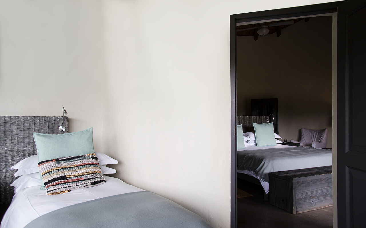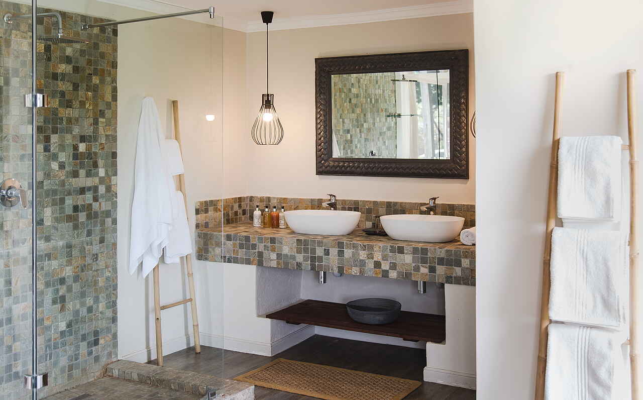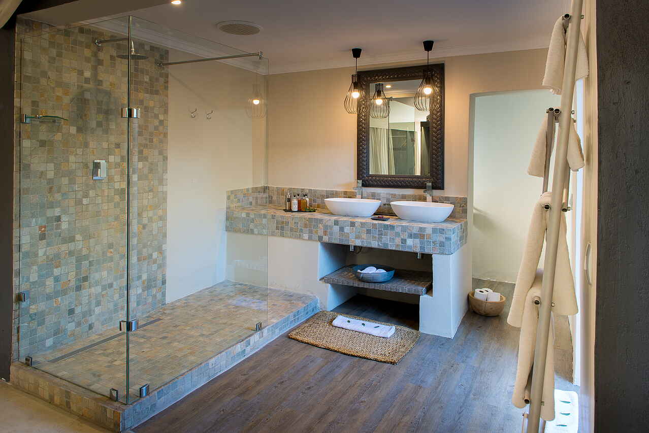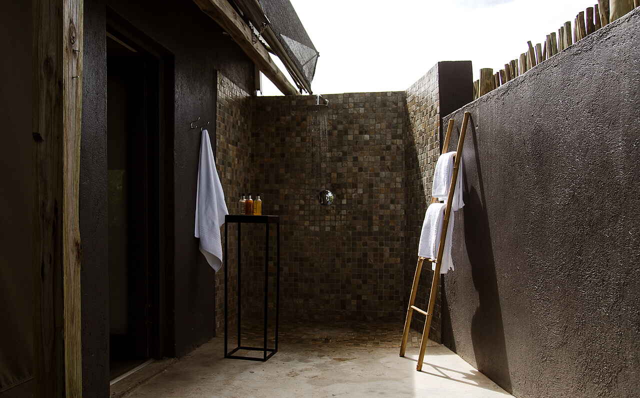 8 luxuriöse Safari Zelte, alle mit Doppelbett; Badezimmer variieren je nach Buchung: Entweder Outdoor-Dusche und Badewanne innen, oder Badwanne im Freien und Dusche innen; Zimmer beinhalten: 2 Adapter, inkludierte Pflegeartikel, Wasserkocher mit Tee und Kaffee, elektronische Heizdecken im Winter, umweltfreundliches Insektenspray Föhn, private Terrasse mit Blick in die Landschaft; alle Zimmer sind Nichtraucher Zimmer. Außerdem 3 Family Chalets, variierend mit jeweils 4 oder 5 Betten.