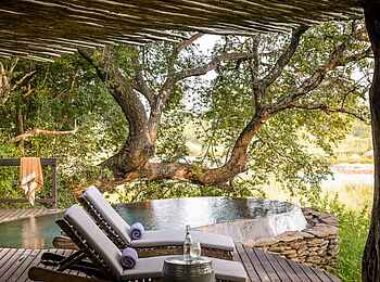 Die Unterkunft bietet 8 Suiten in der Kategorie River-Suite mit Blick auf den Sandriver und 2 Suiten in der Kategorie Bush-Suite mit Blick auf die Wildnis und ein Wasserloch. Die Ausstattung hier ist ein Schlafbereich, ein angrenzendes en-suite Badezimmer mit freistehender Badewanne, doppeltem Waschbecken, Indoor- und Outdoor Dusche, Spültoilette und fließend Kalt- und Warmwasser. Angrenzend gibt es eine Lounge mit Kamin und ein Aussichtsdeck mit beheiztem Pool. Dei beiden Familiensuiten bieten je ein Master-Schlafzimmer und ein Twin-Schlafzimmer mit jeweils eigenem en-suite Badezimmer. Außerdem einen Eingangsbereich mit Lounge, zwei private Aussichtsdecks und einen großen Swimmingpool. Die Familiensuiten können miteinander verbunden werden und verfügen über einen gemeinschaftlichen Ess- und Loungebereich.